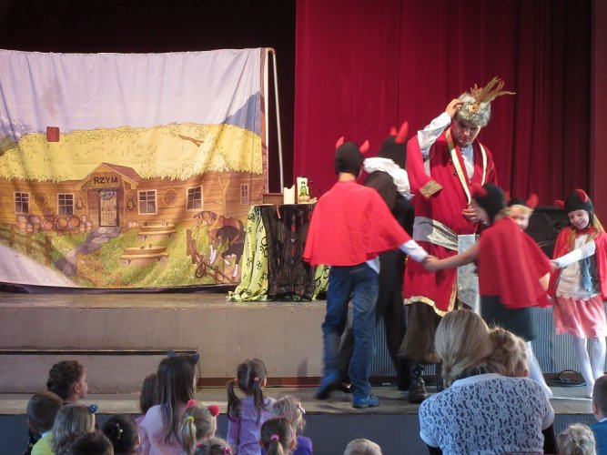 Pierwszy Niedzielny Poranek Teatralny po wakacyjnej przerwie już za nami. Aktorzy Studia Teatralnego SZTUKA z Trzebini zaprezentowali przedstawienie pt. Pan Twardowski, oparte na powszechnie znanej legendzie krakowskiej, stanowiącej element naszej narodowej kultury. Podczas spektaklu młodzi widzowie usłyszeli hejnał krakowski oraz obejrzeli tradycyjne stroje szlacheckie. Spotkanie miało charakter interaktywny - dzieci angażowały się i brały czynny udział w spektaklu (m.in. tańczyły i pomagały diabełkowi schwytać Pana Twardowskiego). Gra aktorska, kolorowa scenografia (w tle Zamek na Pieskowej Skale, Maczuga Herkulesa w Parku Ojcowskim) i barwne kostiumy zagwarantowały fantastyczną zabawę. Wkrótce kolejne Niedzielne Poranki Teatralne w PKZ Domu Kultury Ząbkowice.