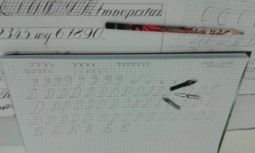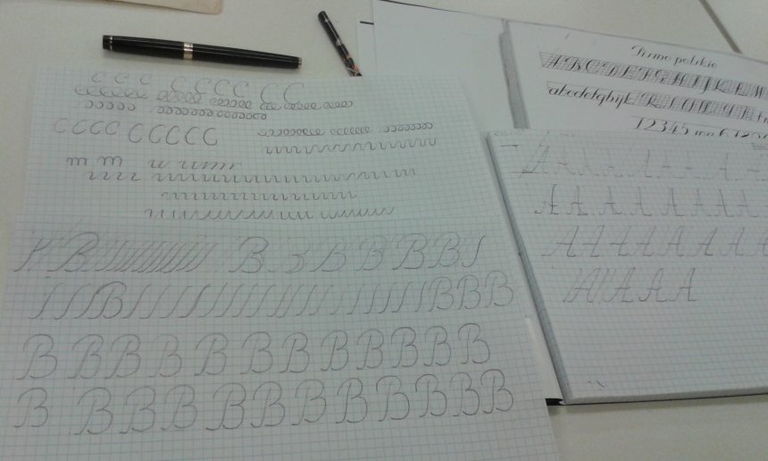 Za nami pierwsze ćwiczenia kaligraficzne - wprawki ołówkiem, kreślenie różnego rodzaju linii oraz liter ozdobnych. Warsztaty mają usprawnić nadgarstek, ramię i całą rękę, a także koordynację wzrokowo-ruchową, koncentrację oraz uwagę.
