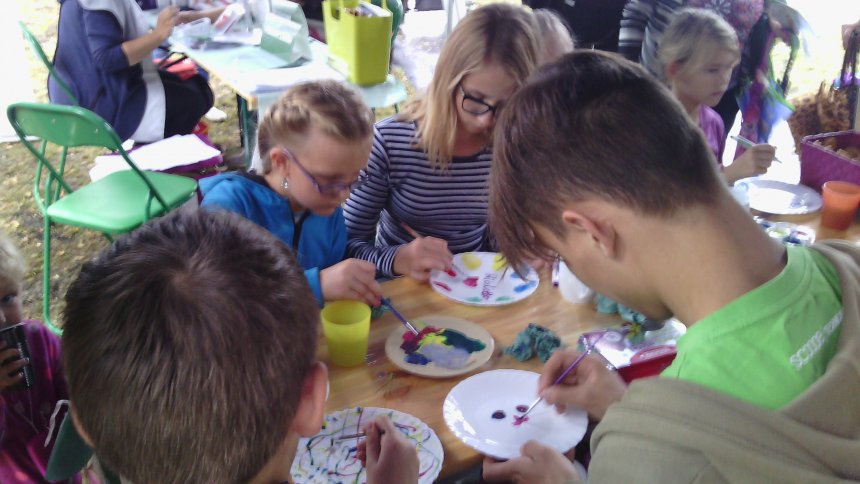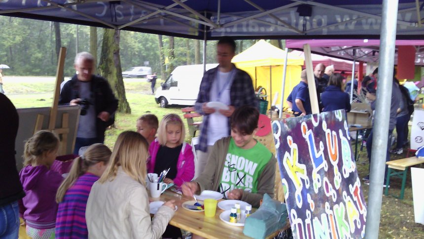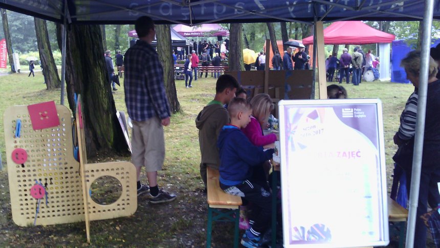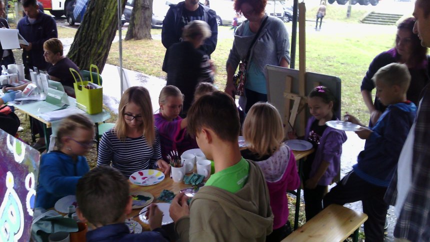 Na tegorocznej imprezie można było zobaczyć m.in. czytelnię „pod chmurką" z MBP ( z konieczności pod namiotem), pojazd opancerzony zapewniony przez Muzeum Miejskie, Gołonóg ze strażackiego wysięgnika, wykonać torbę z „Plastykiem”, połączyć kable (nie żartuję!) z TZN-em i pomalować kubek lub zrobić świecznik z Unikatem. Można też było zapoznać się z nasza ofertą zajęć.