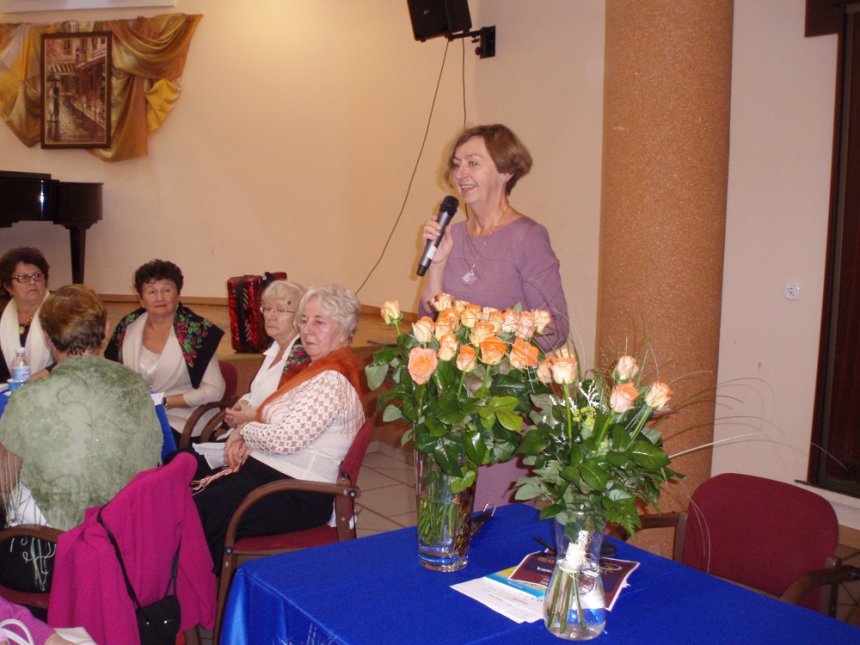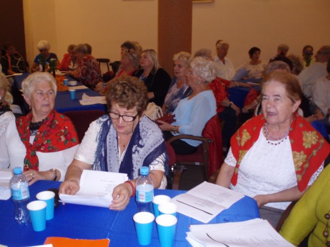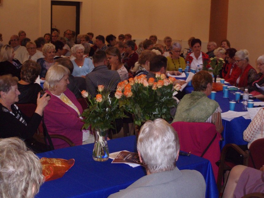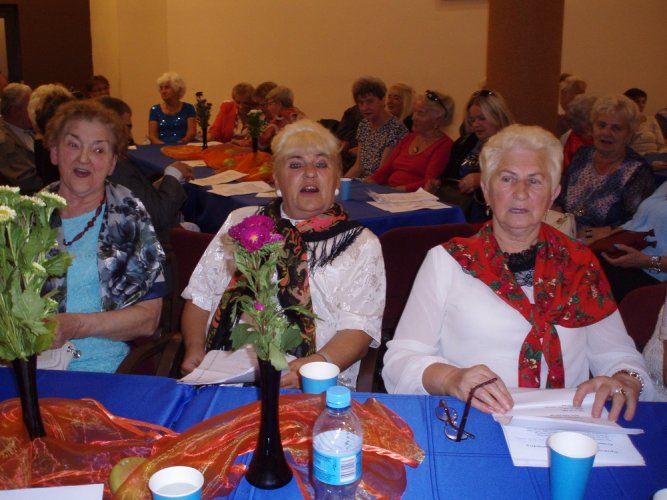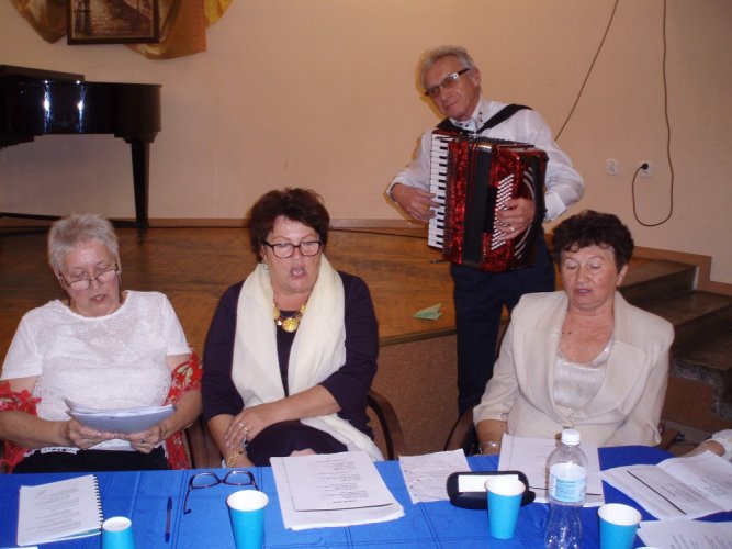 Polska, złota jesień towarzyszyła sympatykom wspólnego śpiewania w drodze do Klubu Osiedlowego Helikon. Tak rozpoczął się program rozrywkowy Reden z piosenką biesiadną. O wrażenia wzrokowe zadbała Stanisława Bień ze Stowarzyszenia Twórców Kultury Zagłębia Dąbrowskiego, prezentując wyjątkową wystawę obrazów haftowanych (ekspozycja w holu klubu potrwa do 17 października br.). Oprawę muzyczną przygotowały członkinie Klubu Serniora Reden oraz Jerzy Kołodziej, akompaniujący na akordeonie. Całości towarzyszyły przytaczane fragmenty opisów obyczajów na temat tradycji biesiadowania w polskiej literaturze. Jednym z bohaterów był... ziemniak, który niegdyś królował na biesiadnych stołach i w ogniskach. Spontanicznie ogłoszono więc dzień 29 września - Dniem Króla Ziemniaka. Do późnych godzin wieczornych rozbrzmiewało wspólne śpiewanie. Nie zabrakło anegdot z życia seniorów, którzy tego dnia dominowali, ciesząc się pogodną jesienią i dobrym towarzystwem. Na finał odśpiewano patriotyczną pieśń Kwiaty polskie.