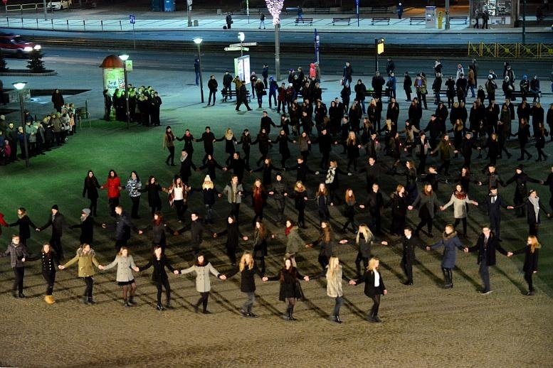 Po zakończeniu Koncertu Noworocznego, goście z Sali Teatralnej dołączyli do widowni zgromadzonej na Placu Wolności, gdzie rozbrzmiała uroczysta muzyka i rozpoczął się efektowny pokaz tańca pn.: "100 Maturzystów na 100-lecie Miasta", w wykonaniu uczniów szkół średnich z terenu Dąbrowy Górniczej. Maturzyści zatańczyli poloneza przed Pałacem Kultury Zagłębia, świętując setną rocznicę nadania Dąbrowie prawa miejskich, w oryginalny i jakże widowiskowy sposób. Autorką bogatego układu choreograficznego była Pani Zofia Czechlewska. Mamy nadzieję, że to krok w kierunku nowej, pięknej tradycji, a dąbrowski polonez na trwałe wpisze się do styczniowego kalendarza kulturalnego naszego miasta!