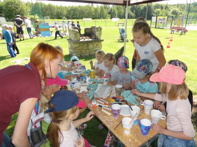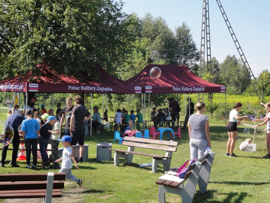 "Przystanek wakacje" zgromadził dużą liczbę dzieci, które uczestniczyły w grach i zabawach sportowych, warsztatach plastycznych