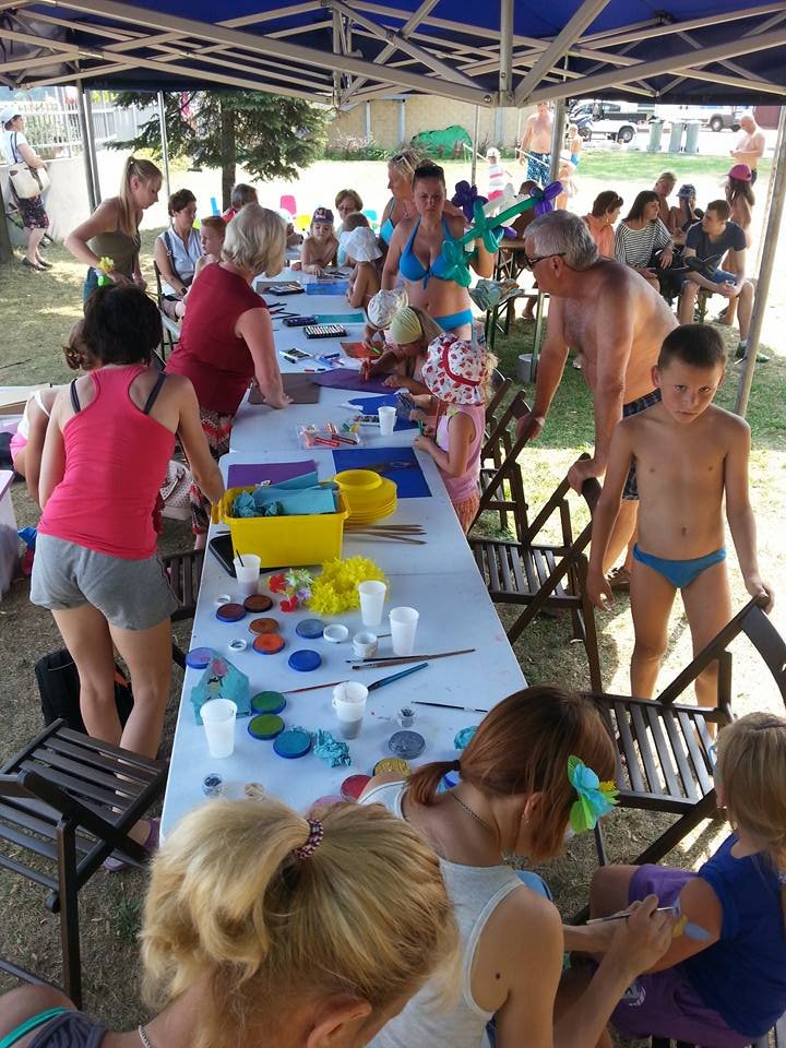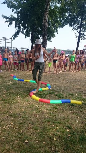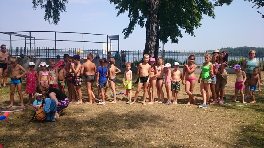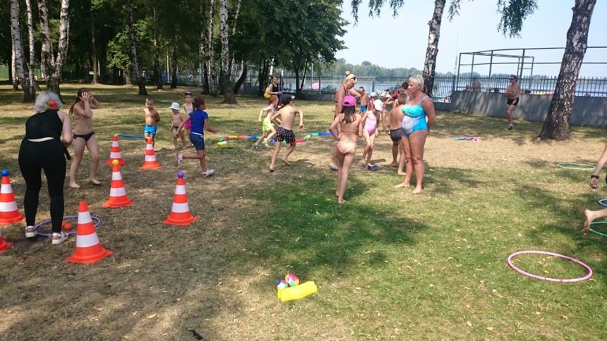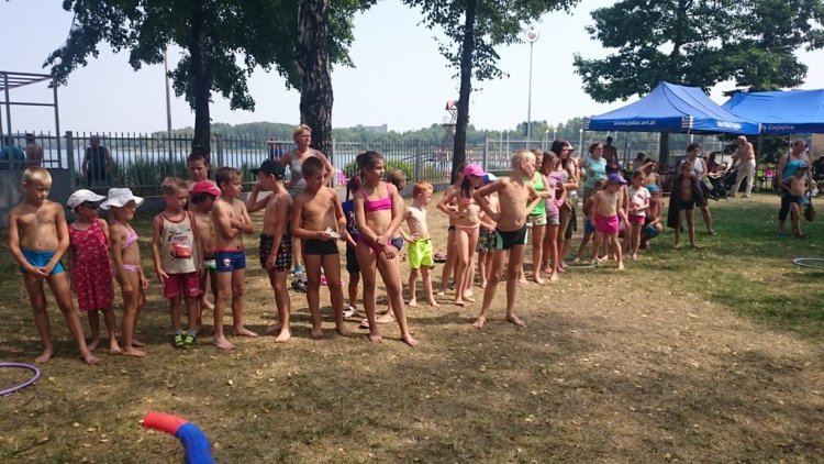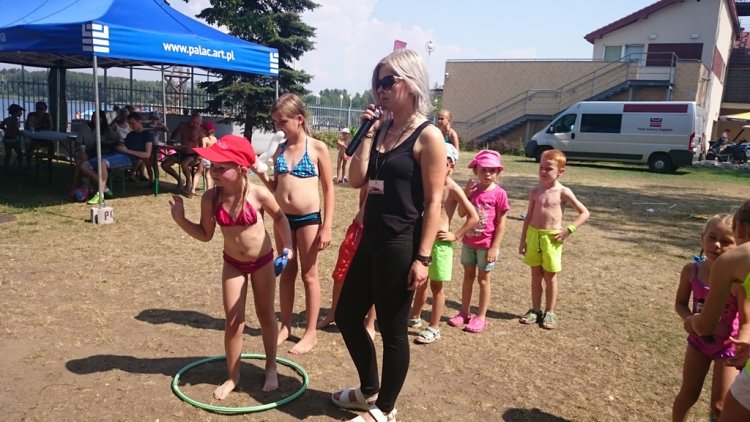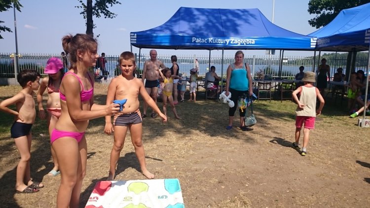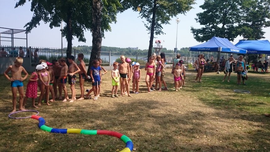 Chętnych do zabaw mimo upału nie brakowało podobnie jak do szaleństw w dmuchanym zamku. Teren ośrodka Centrum Sportów Letnich i Wodnych okazał się prawdziwą oazą. Kawałek zacienionego trawnika oraz dystrybutor z wodą przyniosły wszystkim ukojenie od promieni słonecznych, a konkursy i warsztaty plastyczne sprawiły, że popołudnie nad wodą stało się dużo ciekawsze.