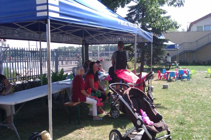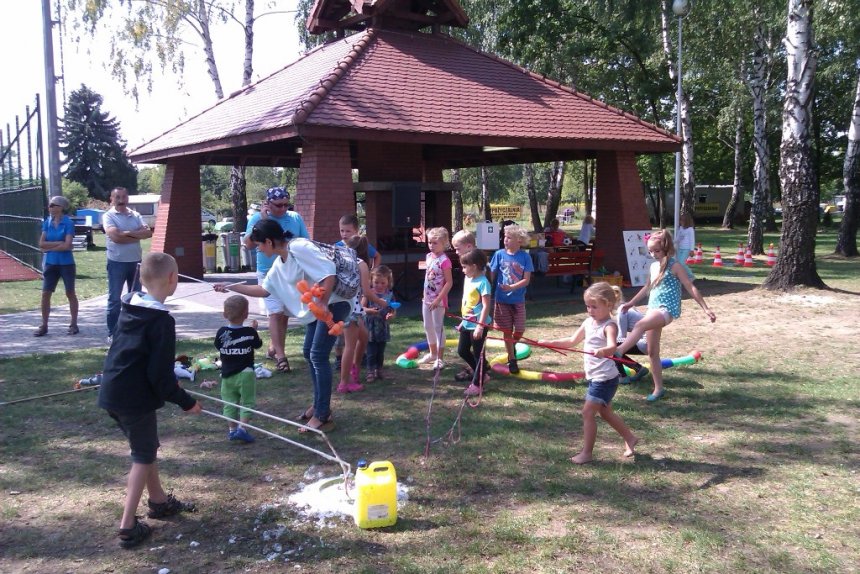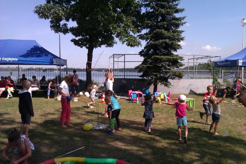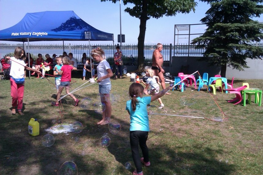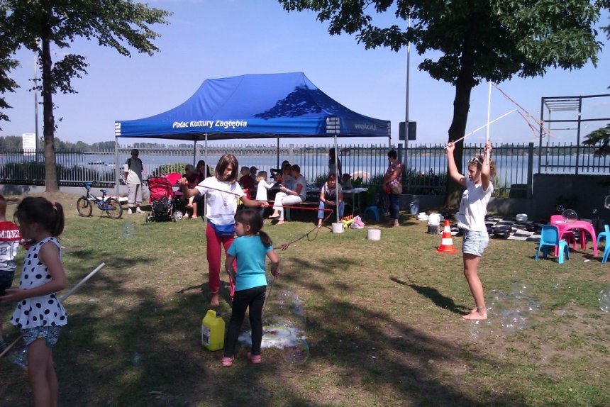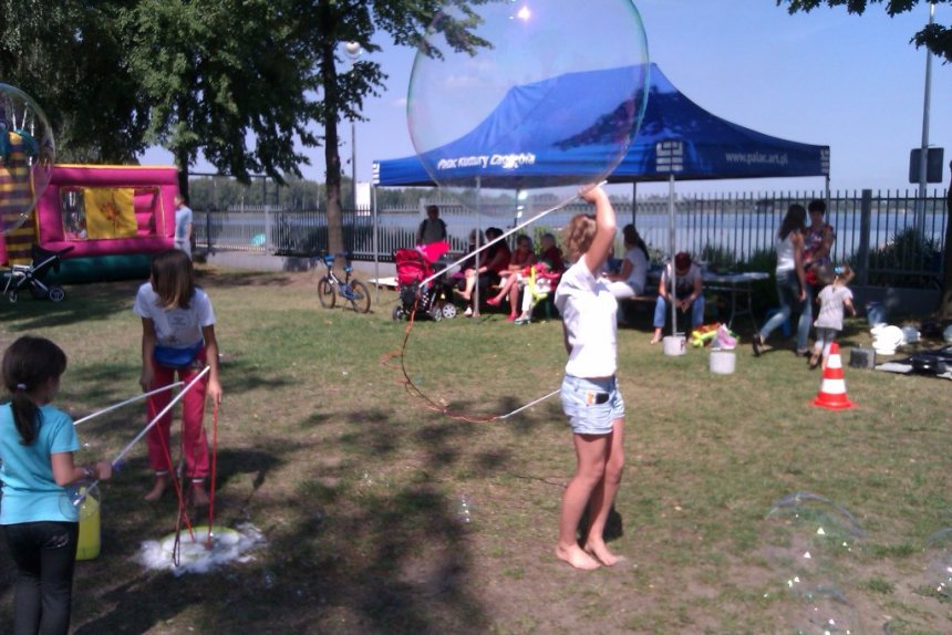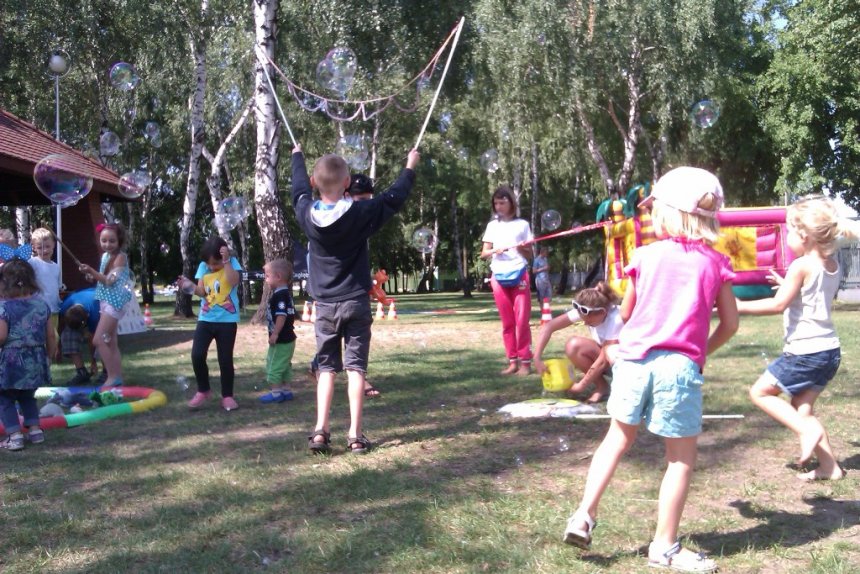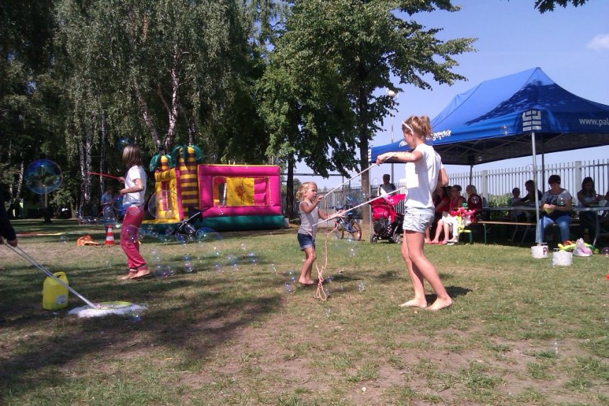Ci, którzy akurat nie uczestniczyli w konkursach z nagrodami, nie układali Domina i nie grali w Jengę, warcaby ani badmintona, mogli odwiedzić nasz namiot plastyczny, który dziś dosłownie zamienił się w salon tatuażu i fabrykę zwierzątek z balonów. Zabawę pięknie zakończyło tradycyjne już wspólne puszczanie olbrzymich mydlanych baniek.