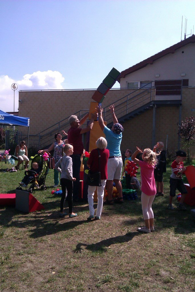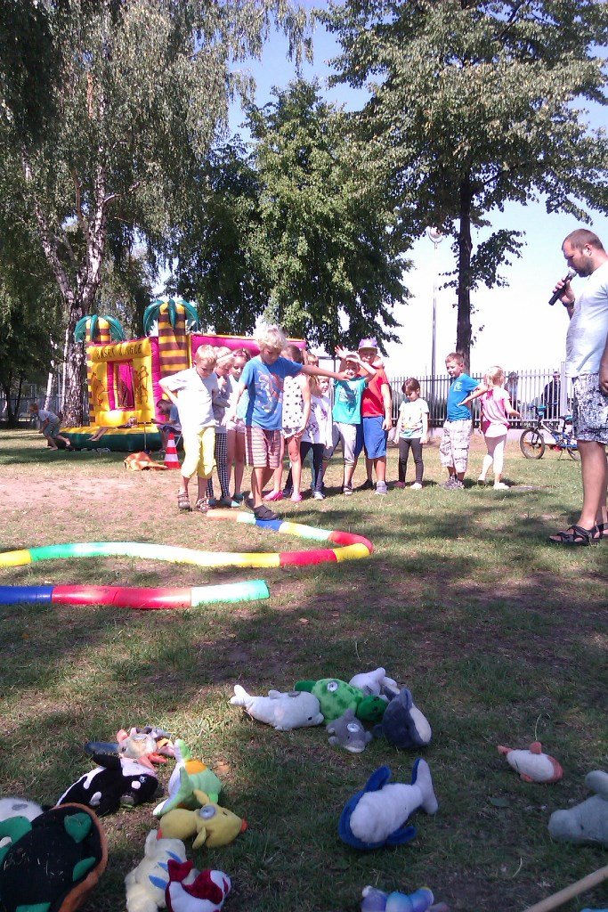 Pan Jarek Cyba z kabaretu „Dno” dwoił się i troił i jak zwykle miał głowę pełną pomysłów. Co chwilę angażował wszystkich w przeróżne konkurencje. Pojawił się tor przeszkód, teleturniej „Jaka to melodia”, gra w rekina, łowienie pluszaków, układanie sześcianu, a także niezwykle trudny do pokonania „Laser House”. Wiele emocji wywołał konkurs na najwyższą wieżę z klocków. Duch rywalizacji obudził się w rodzicach i dziadkach, którzy bardzo zaangażowali się w tworzenie tych imponujących konstrukcji.