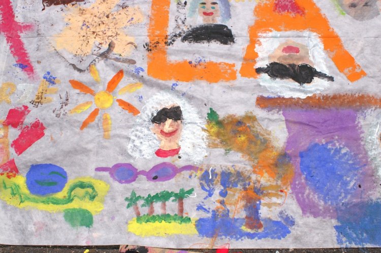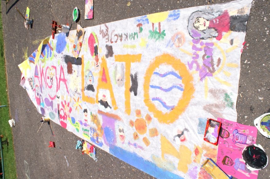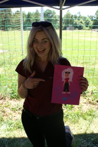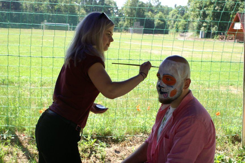 Dużo radości sprawiło wszystkim malowanie instruktorów. Pan Olaf i Pani Kama doczekali się swoich podobizn na wielkoformatowym płótnie. Podobieństwo było widoczne na pierwszy rzut oka. Znalazły się też rysunki przedstawiające wymarzone wakacje, czyli góry, morze i palmy. Na koniec wszyscy zrobili sobie pamiątkowe zdjęcie ze swoim wspólnym dziełem. Miłośnicy słowotwórstwa też znaleźli coś dla siebie. Mogli wziąć udział w grze w Scrabble.
