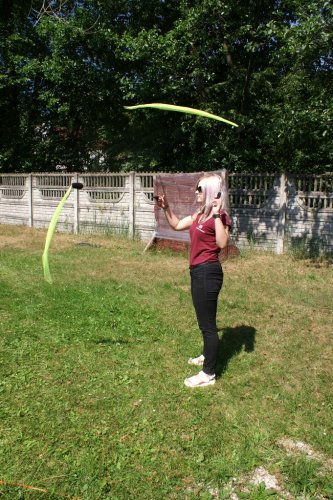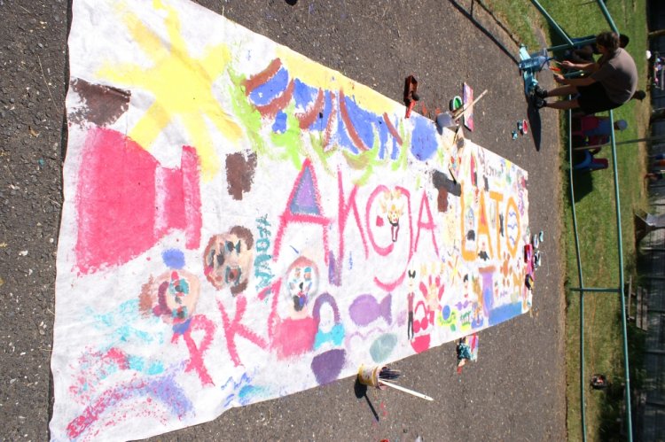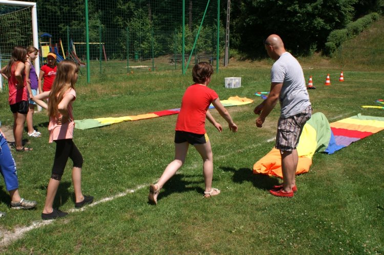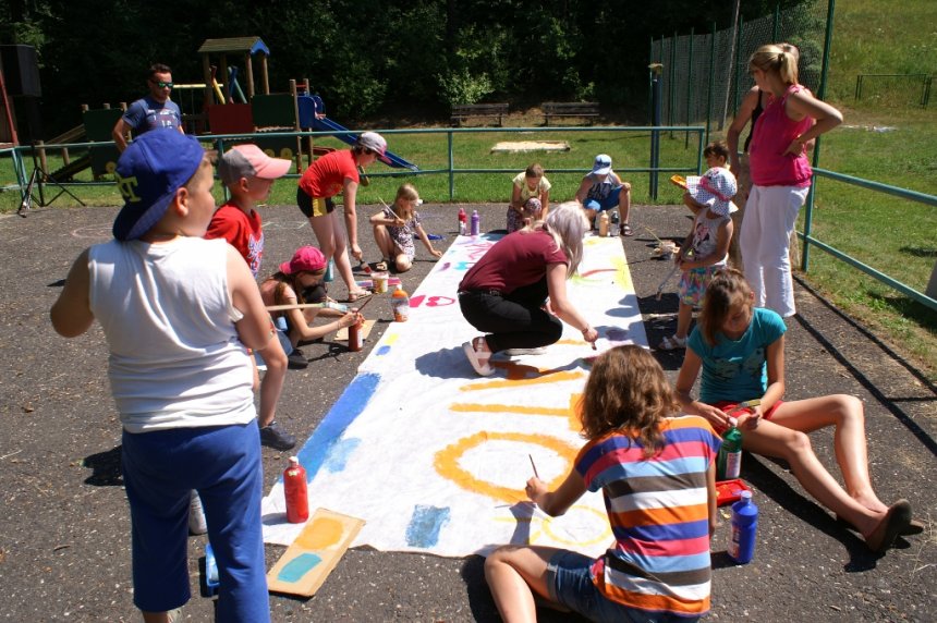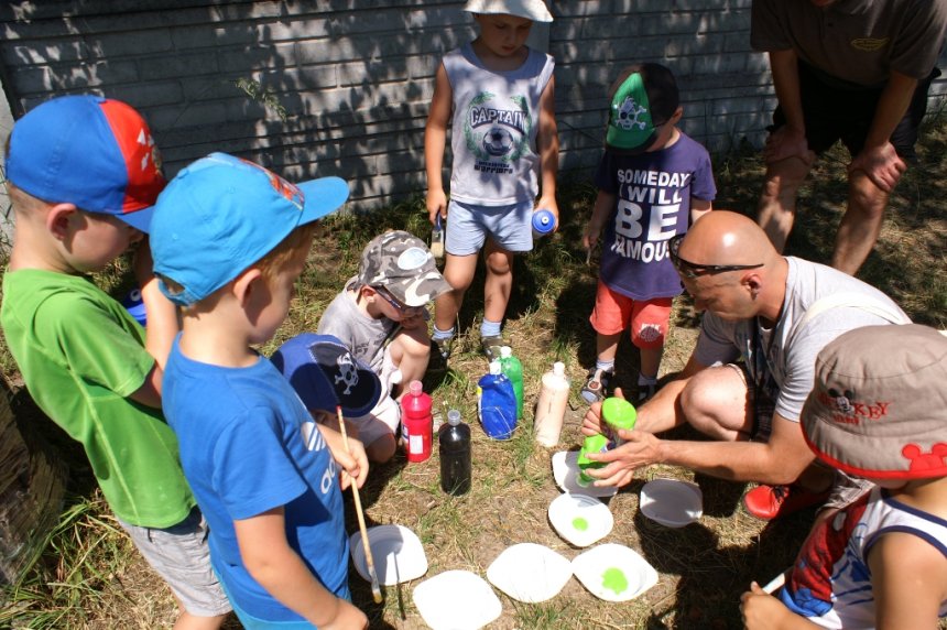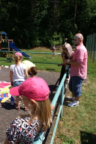 Nawet dająca się wszystkim we znaki temperatura, nie była w stanie odciągnąć ich od warsztatów artystycznych i konkurencji sportowych. Twarze dzieci szybko nabrały rumieńców. Na szczęście przed słońcem chroniły nas namioty, a na posterunku był też dystrybutor z wodą, która ugasiła pragnienie.