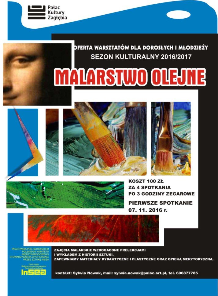 W poniedziałek, 7 listopada w Pracowni plastycznej PKZ ruszają kolejne warsztaty dla dorosłych i młodzieży. Tym razem zmierzymy się z malarstwem olejnym. Na zajęciach zapoznamy się z techniką, która nie pozwala na natychmiastowe, łatwe i "tanie" efekty. Będziemy pracować nad jednym obrazem o wymiarach 70x50. Efekty pracy uczestników będziemy systematycznie prezentować.
