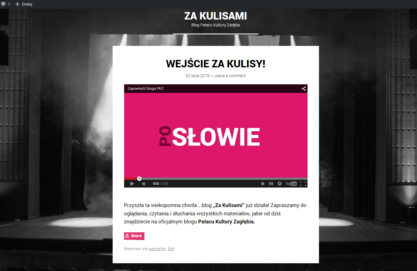 Wywiady, recenzje, relacje z imprez oraz making of Pałacu Kultury Zagłębia – to wszystko znajdziecie na nowym blogu „Za Kulisami”. Blogu tworzonym przez ludzi kultury dla ludzi kochających kulturę. Jeśli ciekawi Was co za sceną piszczy, jak organizuje się koncerty i kto za tym wszystkim stoi, to już dziś zajrzyj TUTAJ