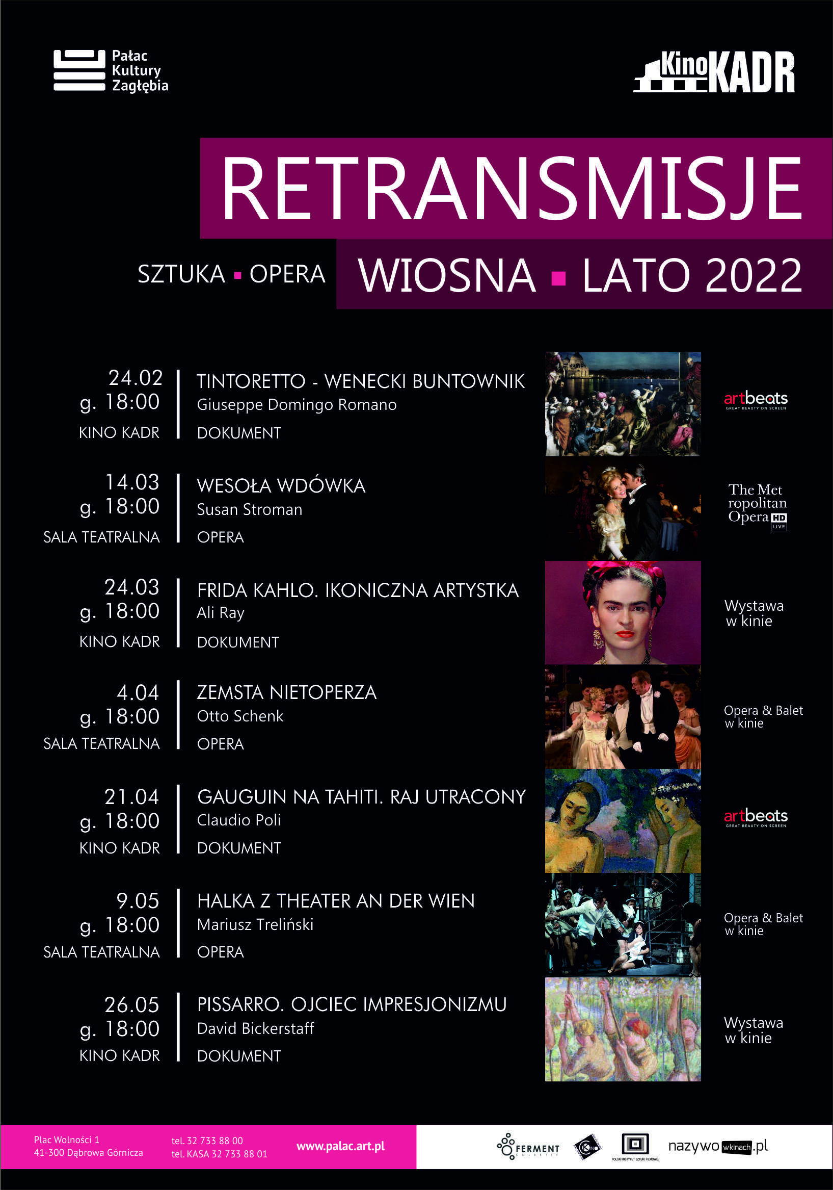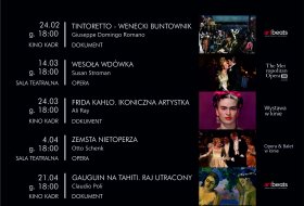 Tym razem podzielimy miejsca naszych spotkań - zapraszamy do Sali Teatralnej na retransmisje oper i spektakli oraz do sali kinowej Kadr na intrygujące dokumenty o sztuce. Te prezentowane będą spod szyldu Art Beats. Wielka sztuka w kinie i Wystaw w kinie, a w ramach retransmisji poza uwielbianym przez Państwa Metropolitan Opera odwiedzimy Wiedeń i jego sceny.
