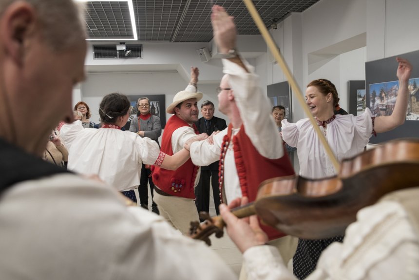 Wczorajsze spotkanie z Jerzym Hacem - autorem wystawy Kapliczki i krzyże przydrożne Istebna - Jaworzynka - Koniaków, można zaliczyć do gatunku niezwykłych. Dąbrowski podróżnik, fotograf i poeta nie tylko opowiedział o tym jak powstał pomysł na wystawę fotograficzną, ale także jak wyglądał proces jej tworzenia. Całości skocznie przygrywał zespół Gminnego Ośrodka Kultury Promocji i Informacji Turystycznej w Istebnej, który pozytywnie nastroił i roztańczył 100-osobowe grono odbiorców, które zebrało się w Galerii Sztuki PKZ.