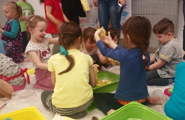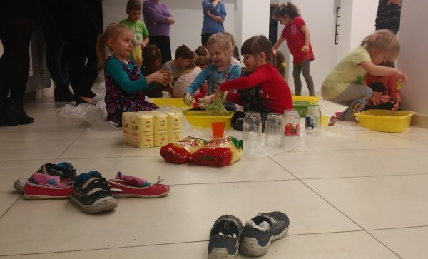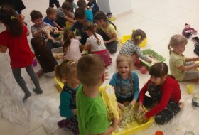 Na początku najmłodsi przyjrzeli się pracom artystów z całego świata i wysłuchali opowieści o sztuce, a także poznali zasady panujące w galeriach, muzeach i innych miejscach kultury. Później przyszedł czas na wykonanie własnej miniatury. Zainspirowani otaczającymi dziełami, dzieci chętnie zabrały się do pracy. Stopniowo, od małej formy do dużej, uczestnicy przecierali artystyczny szlak. Wizytę w Galerii zwieńczyła chwila z sensoplastyką, czyli wyjątkowe, kolorowe i wesołe obcowanie ze sztuką za pomocą wszystkich zmysłów.