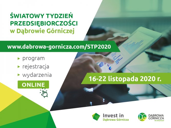 Od 12 lat ten wyjątkowy tydzień świętujemy także w Dąbrowie Górniczej. Tegoroczna edycja będzie wyjątkowa, ze względu na sytuację, większość wydarzeń odbędzie się online. Mamy nadzieję, że dzięki temu zwiększy się zasięg i grono odbiorców. Zaplanowaliśmy dla Was ponad 40 ciekawych szkoleń, konferencji, spotkań, konsultacji, warsztatów oraz wydarzeń skierowanych do przedsiębiorców i uczniów.