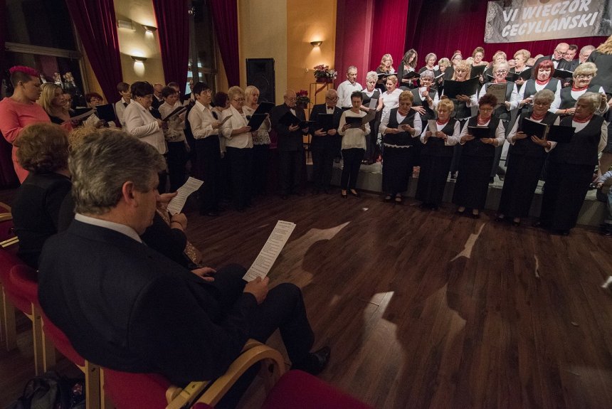 Podobnie było wczoraj, w trakcie VI edycji Cecyliady, podczas której wystąpiły chóry z terenu Dąbrowy Górniczej, a zwłaszcza te śpiewające na co dzień w placówkach i siedzibie Pałacu Kultury Zagłębia. W repertuarze chórów znalazły się zarówno spokojne, jak i te bardziej żywiołowe aranżacje znanych utworów w akompaniamencie organ, pianina, akordeonu i saksofonu. Całe wydarzenie charakteryzuje się niezwykle rodzinną i ciepłą atmosferą oraz wspólną chwilą zapomnienia o troskach dnia codziennego. VI Wieczór Cecyliański obfitował w muzykę, brawa i emocje, a zakończył się wręczeniem upominków z rąk Dyrektora PKZ - Małgorzaty Majewskiej.
