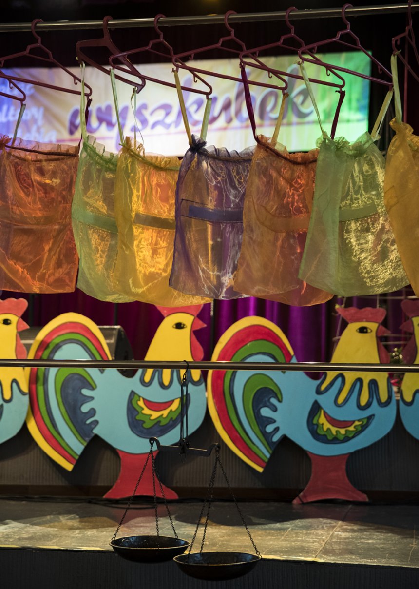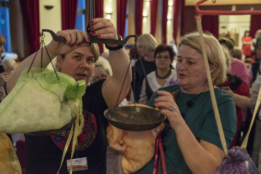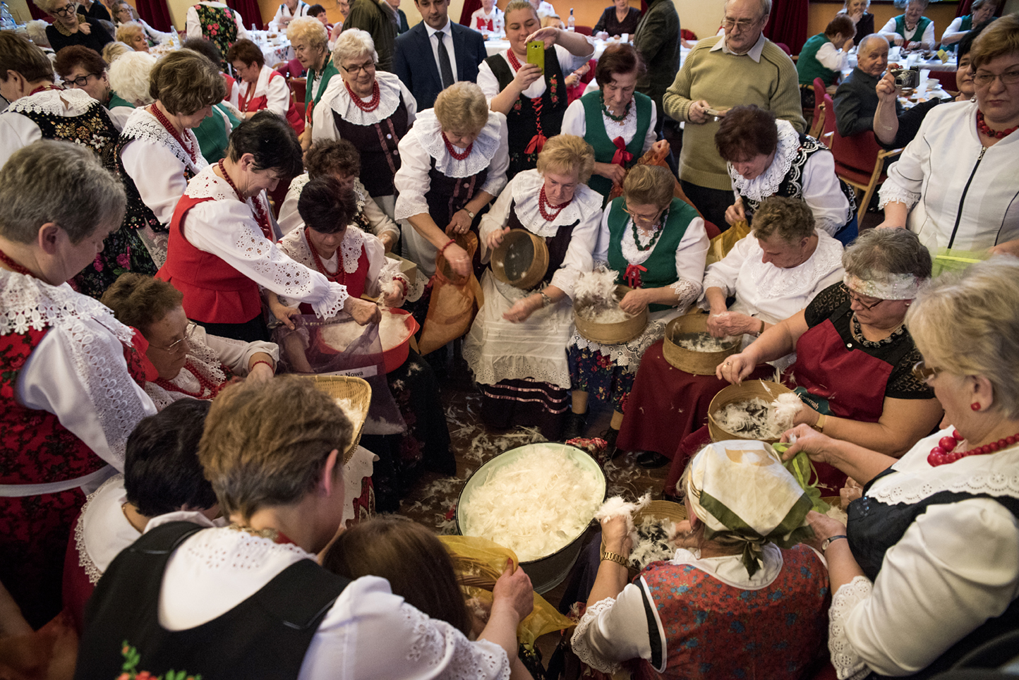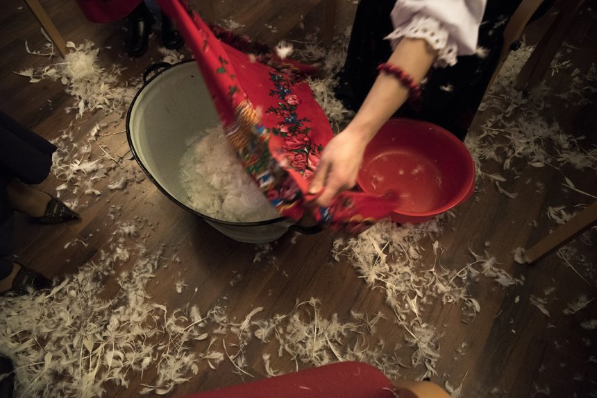 Gwoździem programu, jak co roku, był konkurs skubania pierza. W szranki stanęły przedstawicielki każdego z kół, które miały za zadanie oskubać go jak najwięcej i umieścić w specjalnie przygotowanych, kolorowych workach. Gdy już nie zostało ani jedno, najmniejsze nawet, piórko – worki zważono, by wyłonić zwycięzcę. Tegorocznym Mistrzem Szkubania bezapelacyjnie zostało w tym roku Koło Gospodyń z Tucznawy. Po tak zaciętej rywalizacji o tytuł powalczyli także zaproszeni goście. Tym razem czas był ograniczony. Po trzech minutach okazało się, że… należy on również do pani z Tucznawy. Zwycięzcy otrzymali witraże w kształcie pióra, wykonane w jednej z naszych pracowni.