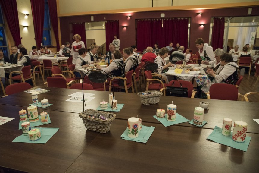 Równolegle z konkursem odbywały się warsztaty artystyczne. Uczestnicy mogli własnoręcznie ozdobić świece bryłowe za pomocą woskowych pisaków. Doświadczeniem i radą służyły instruktorki plastyki PKZ. Powstały prace inspirowane głównie motywami ludowymi oraz samym wydarzeniem. Później nadszedł czas na kolejne przyjemności - na ręce przewodniczących Kół Gospodyń wręczono upominki od pani dyrektor PKZ Małgorzaty Majewskiej, przedstawicieli firmy Arcellor Mittal Poland, Ośrodka Doradztwa Rolniczego. Ze "stołu szczodrości" powoli znikały przysmaki, a imprezę zwieńczył koncert dobrze znanego zespołu Swojaki, który porwał do tańca zarówno panie z kół, jak i zaproszonych gości, rozwiązując tym samym problem nadmiaru kalorii.