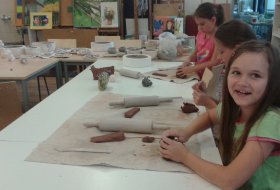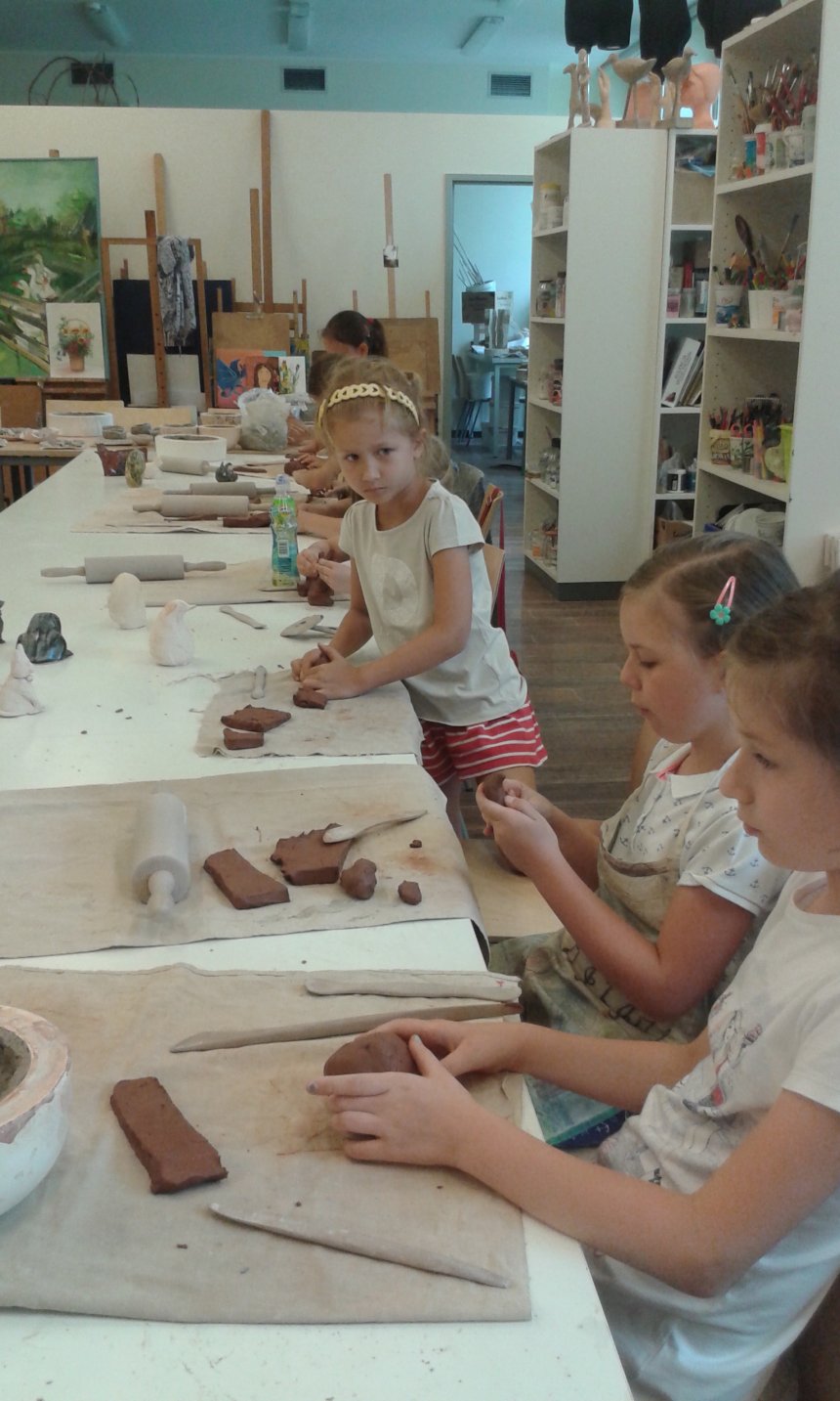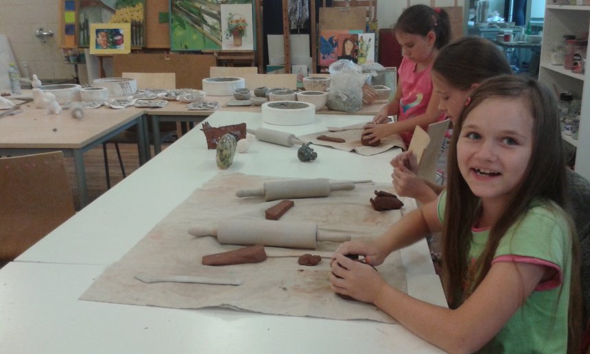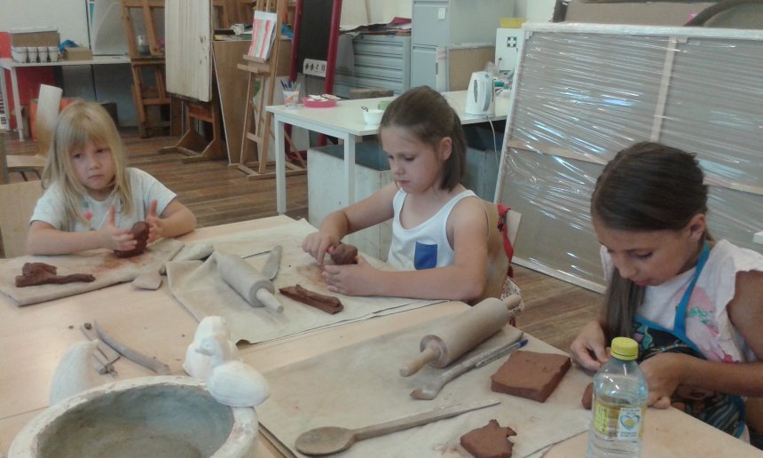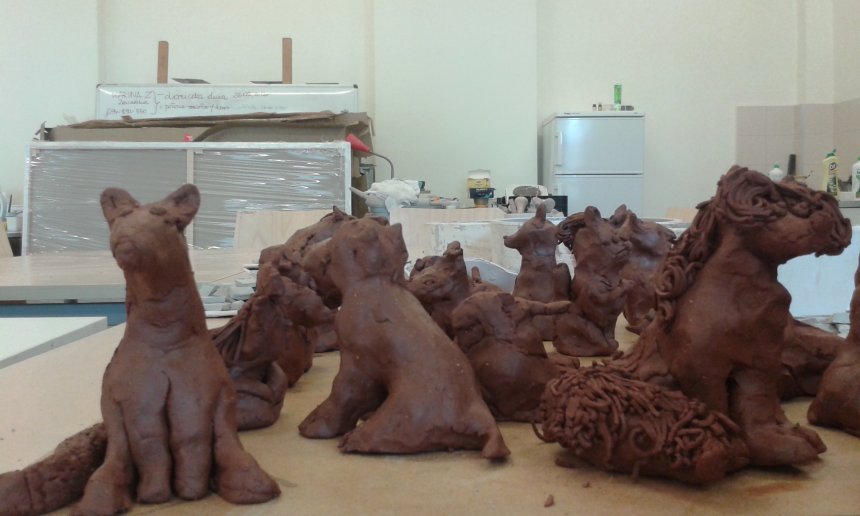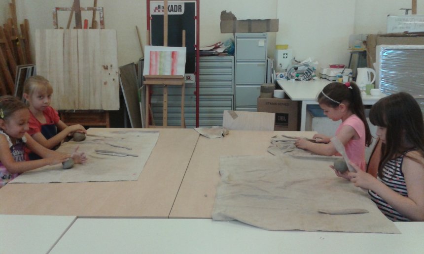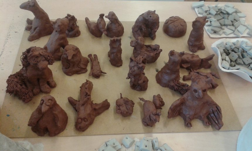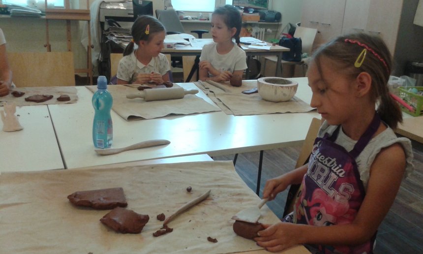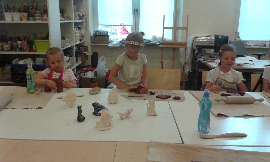 Trwają wakacyjne warsztaty dla dzieci i młodzieży ABC ceramiki. Do tej pory przygotowaliśmy elementy mozaiki ceramicznej, proste miseczki i rzeźby zwierząt. Po wypaleniu w piecu ceramicznym wszystkie elementy będziemy szkliwić i ponownie wypalać.