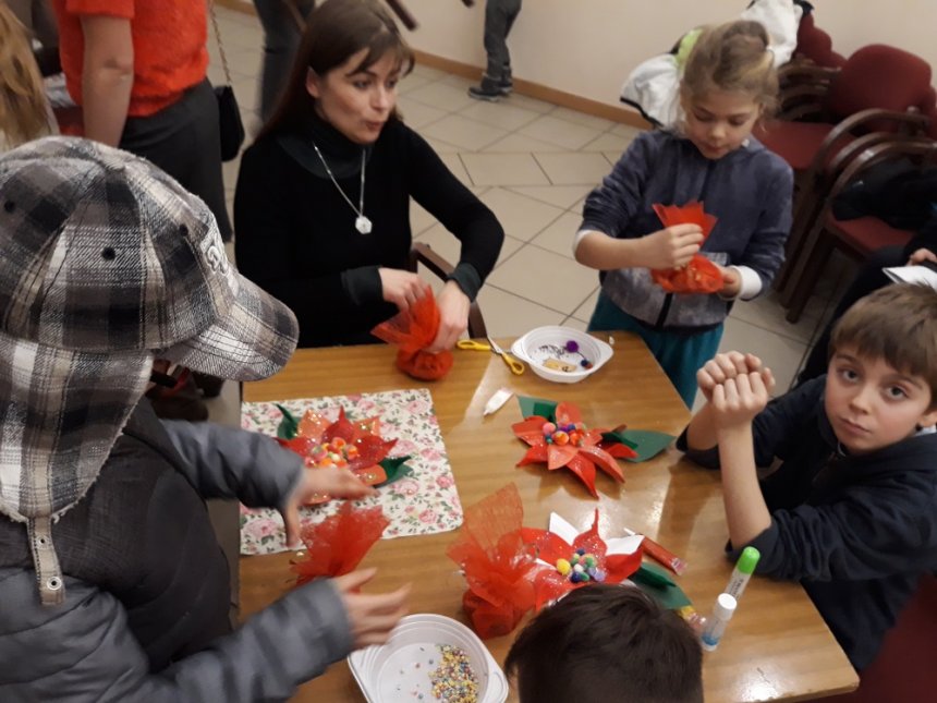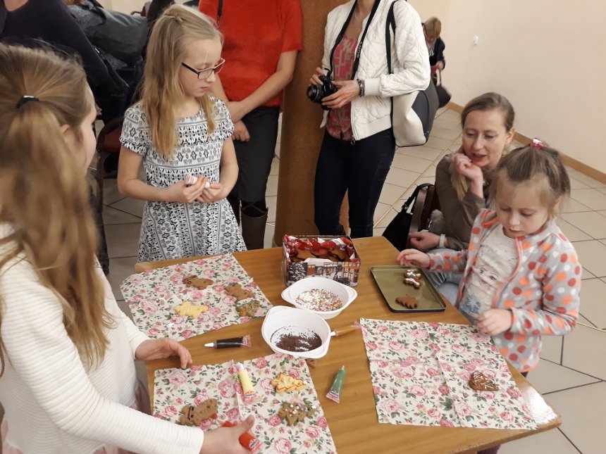 W Klubie Osiedlowym Helikon zapachniało już świętami, a to za sprawą kolejnej Świątecznej manii ozdabiania. Udział w niej wzięły trzy pokolenia uczestników zajęć w klubie. Występ wokalny dzieci z zajęć emisji głosu wprowadził wszystkich w klimat przedświąteczny. Po części artystycznej każdy ozdabiał własnoręcznie (maluszki z opiekunem) swoje pierniczki, efektownie pakował, a następnie stworzył swój niepowtarzalny kwiat gwiazdy betlejemskiej, który stał się podstawą do zapakowania pierniczków. Nie zabrakło konkursu na temat świątecznych zwyczajów.