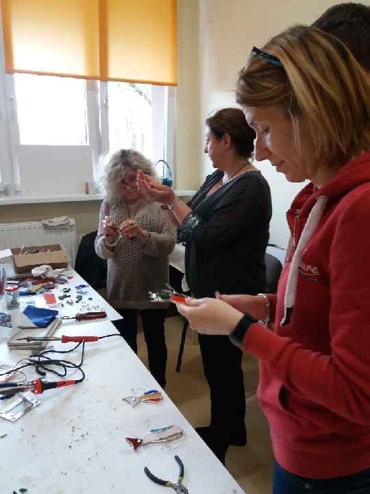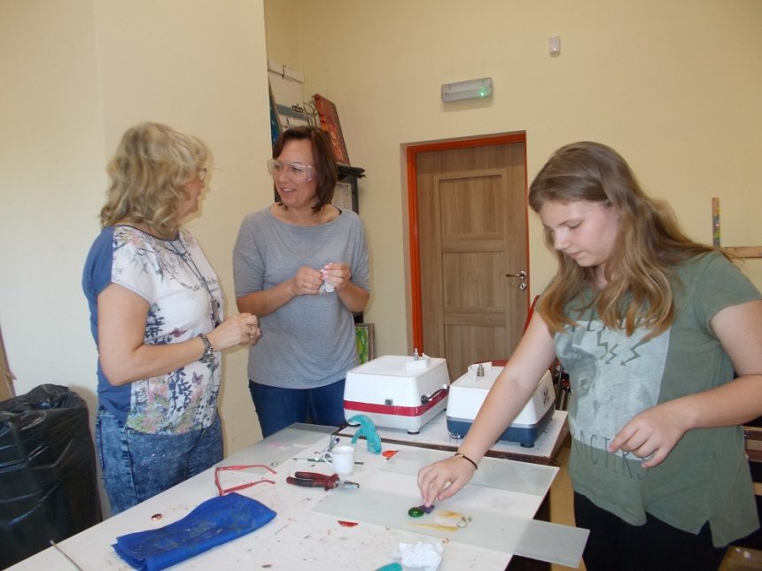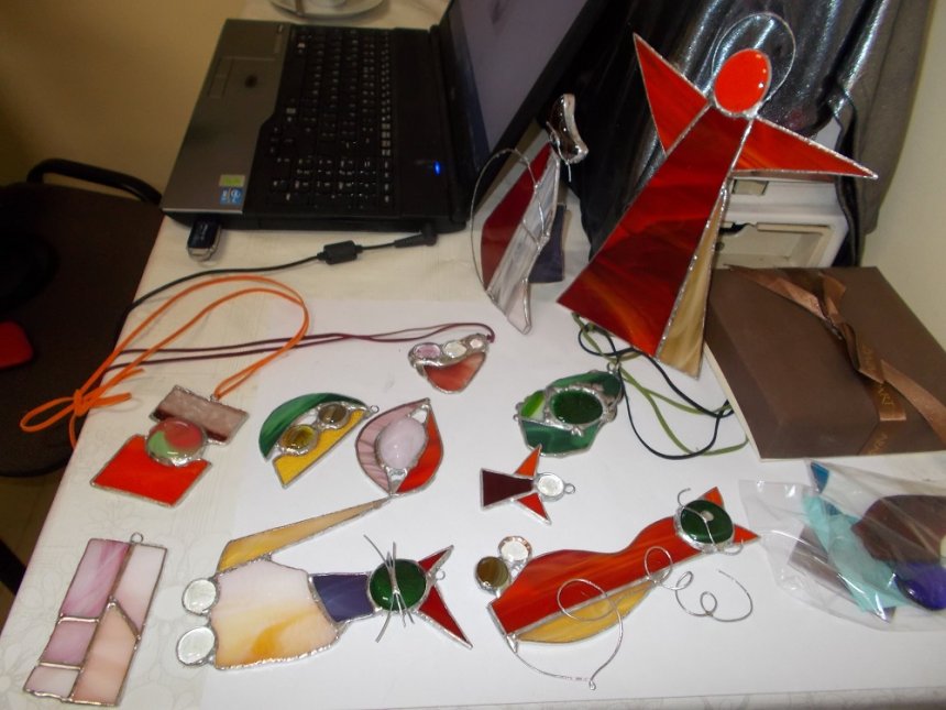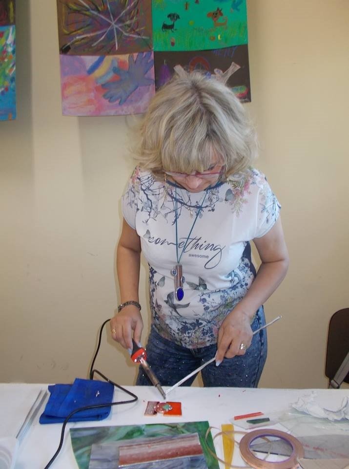 17 i 18 kwietnia po raz kolejny w Klubie Osiedlowyjm Zodiak spotkali się miłośnicy kolorowych szkiełek na warsztatach witrażu Tiffany'ego. Zajęcia cieszą się coraz większą popularnością, a uczestnicy są kreatywni i chętnie podejmują witrażowe wyzwania. Tym razem tematem przewodnim były małe formy dekoracyjne, wśród nich biżuteria. Powstały przepiękne zawieszki, wisiorki o różnorodnych kształtach oraz aniołki, koty, diabełki, kwiaty i wiele ciekawych form. Nowi uczestnicy zapoznali się z techniką tworzenia witrażu metodą Tiffany'ego. Istotą warsztatów było przybliżenie tej wdzięcznej i prostej techniki.