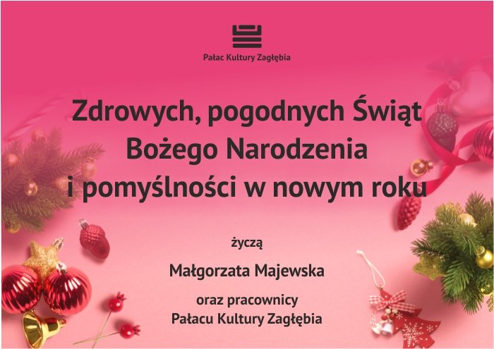 Przy okazji pragniemy przypomnieć, że w dniach 24-27 grudnia Pałac Kultury Zagłębia jest nieczynny.