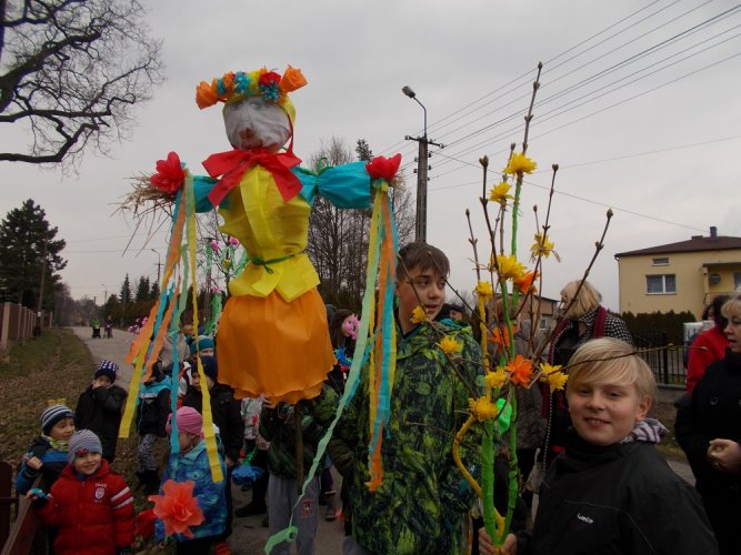 W pierwszej części uczestnicy w barwnym korowodzie udali nad rzekę aby spalić i utopić Marzannę, następnie z gaikiem i wiosennymi ,,ekologicznymi” kwiatami wszyscy wrócili do Świetlicy.