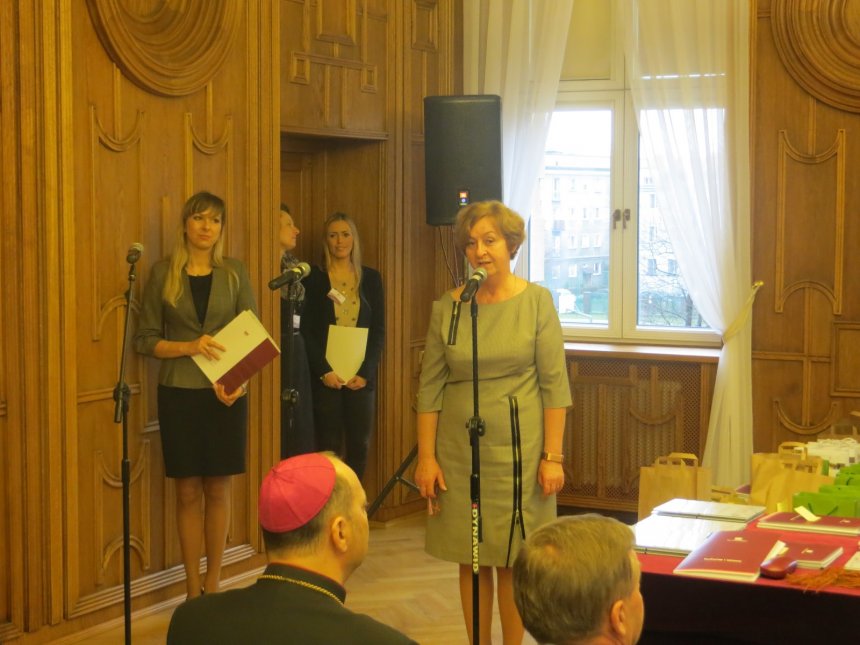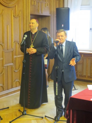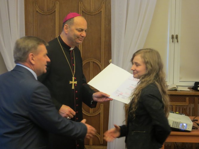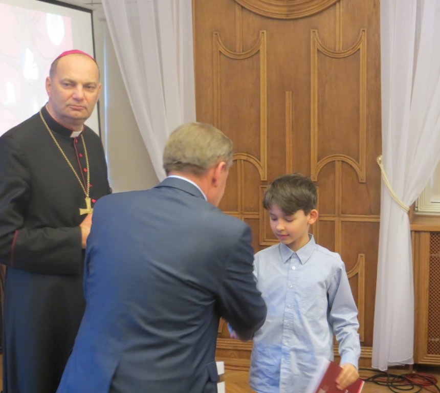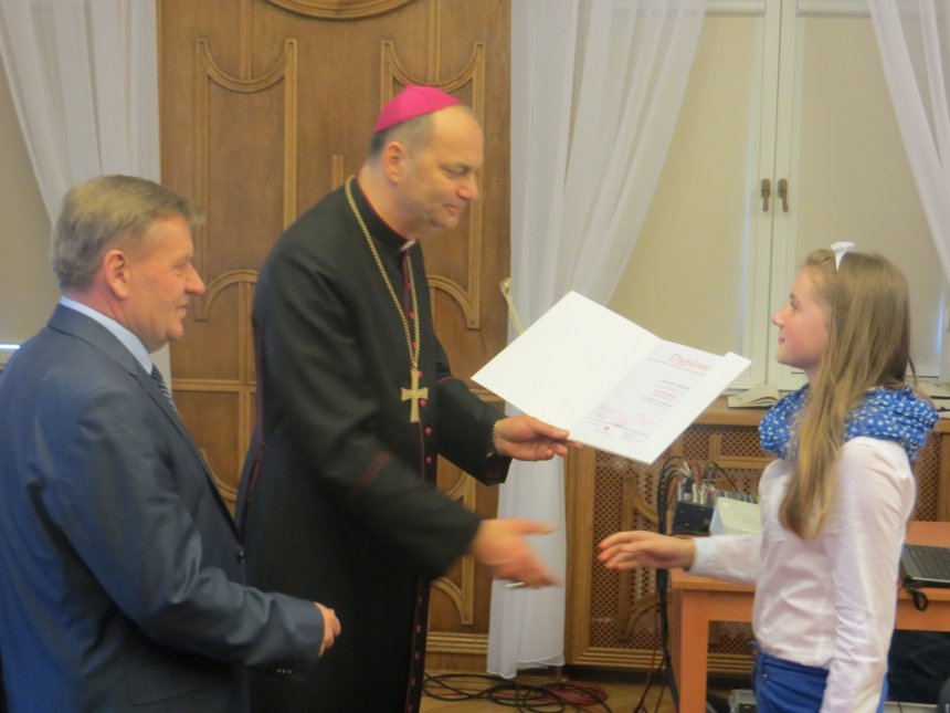 W ceremonii wręczenia nagród wzięli udział zwycięzcy z czterech grup wiekowych, osoby wyróżnione, goście i patroni honorowi: Biskup Diecezji Sosnowieckiej – ks. dr Grzegorz Kaszak oraz Prezydent Miasta Dąbrowy Górniczej - Pan Zbigniew Podraza.