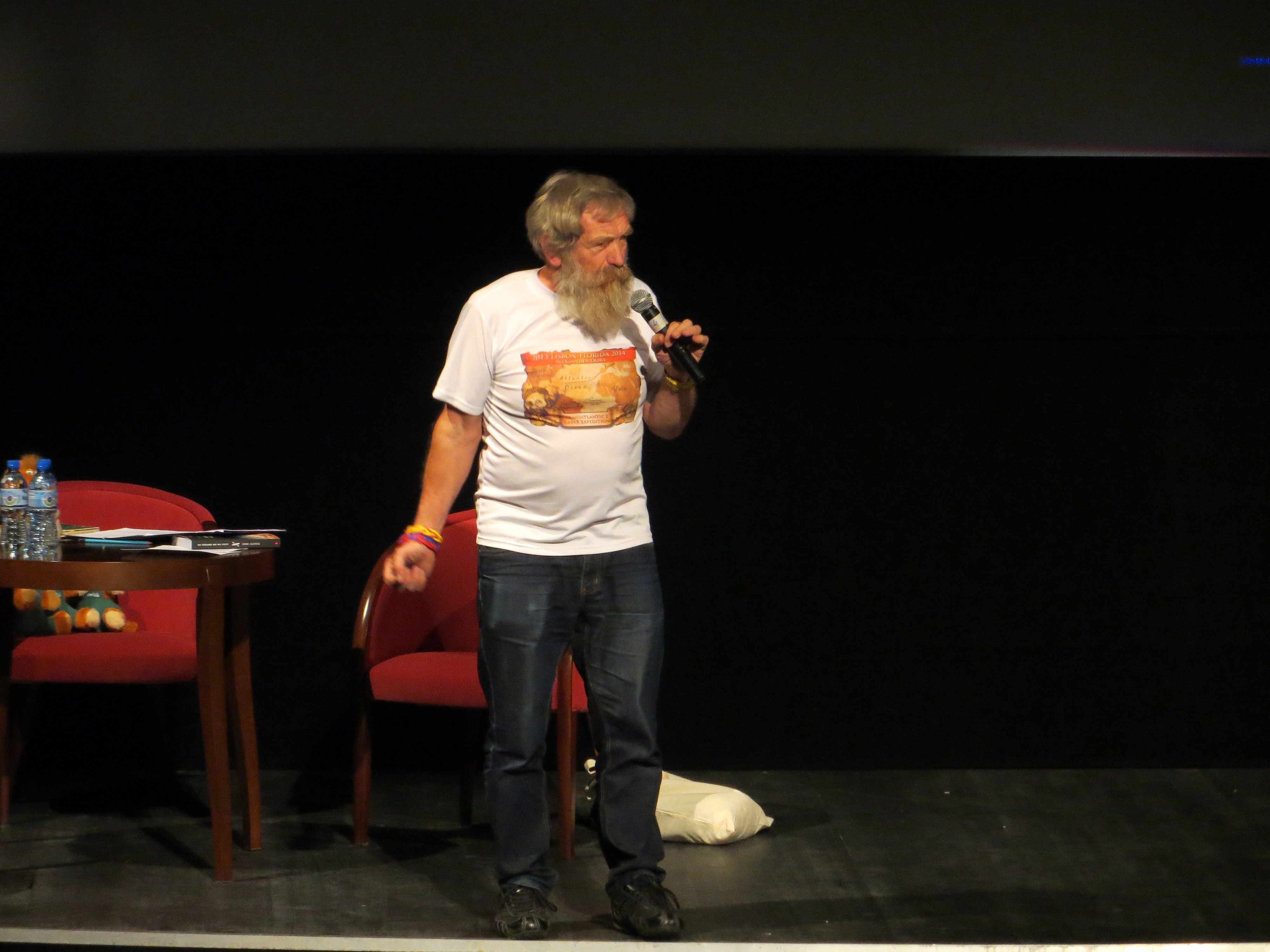 Po gromkich oklaskach przyszła pora na gwiazdę wieczoru. Skromny i odważny. Zabawny i interesujący. Człowiek, mówiący o sobie „zwykły turysta”. Pierwszy człowiek, który przepłynął Atlantyk kajakiem – Aleksander Doba. Niezwykle pozytywny podróżnik z Polic dzielił się swoimi przeżyciami z wypraw. Jak można się domyślić, potrzebne jest wiele energii, by za pomocą siły mięśni przepłynąć  4 500 mil morskich. Tę wewnętrzną energię było widać również na scenie. Ruchy sceniczne Olka – bo tak podpisywał się wszystkim na książkach i zdjęciach – można było porównać do ruchów Briana Johnsona z zespołu AC/DC.  Swoimi opowieściami nie raz rozbawił dąbrowską publiczność.