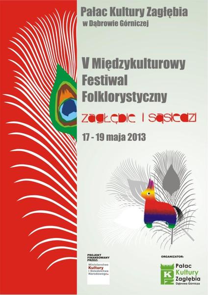 V "Międzykulturowy Festiwal Folklorystyczny - Zagłębie i Sąsiedzi" odbędzie się w dniach 17 do 19 maja 2013 roku w Dąbrowie Górniczej. Z uwagi na trwający remont budynku PKZ, główna część konkursowa oraz warsztatowa odbędzie się w Hali Sportowo-Widowiskowej "Centrum". Oprócz części konkursowej, która stanowi trzon całej imprezy planujemy dodatkowe atrakcje m.in. część koncertową w Parku Hallera oraz kiermasz rękodzieła ludowego. Podobnie jak w latach ubiegłych konkurs będzie podzielony na część dla dzieci i dla dorosłych.