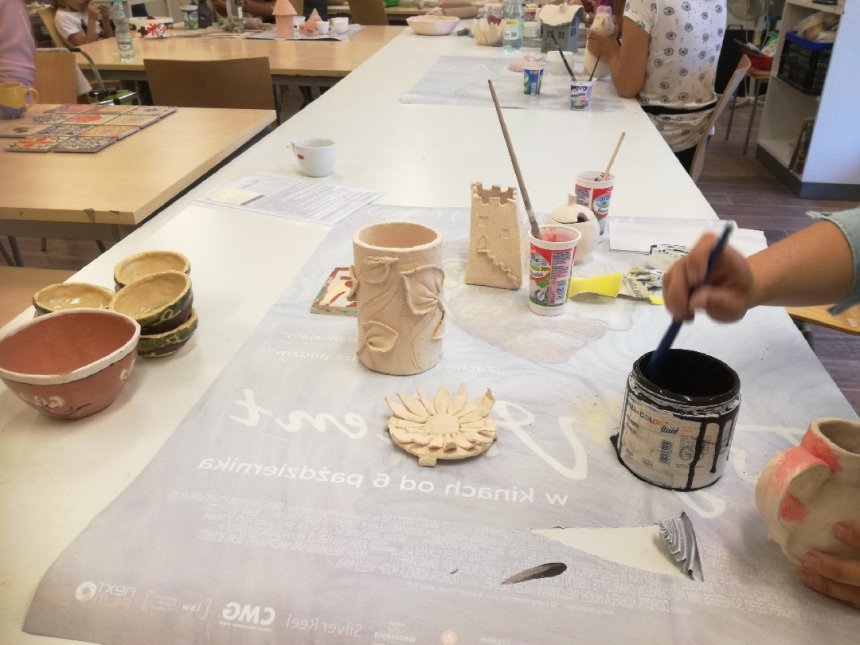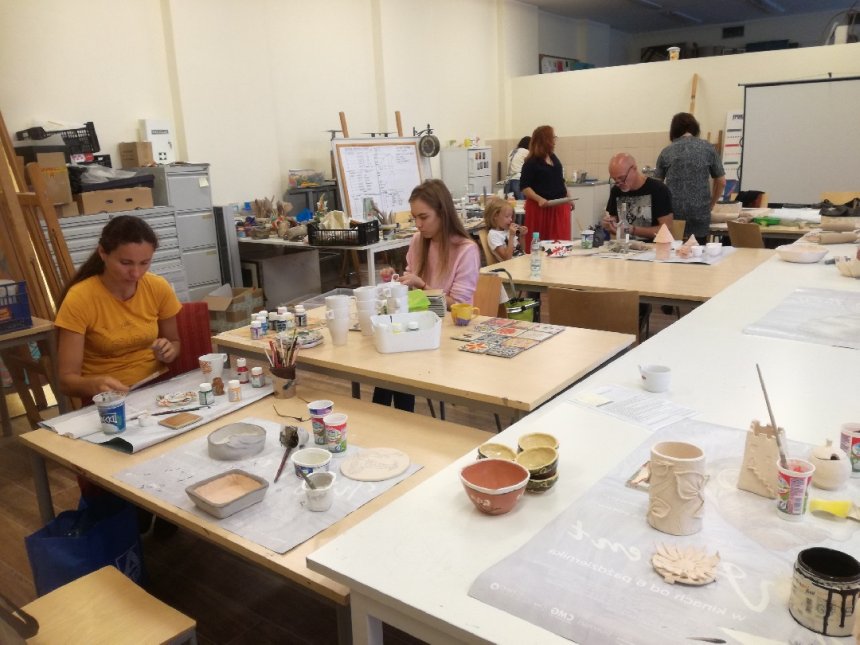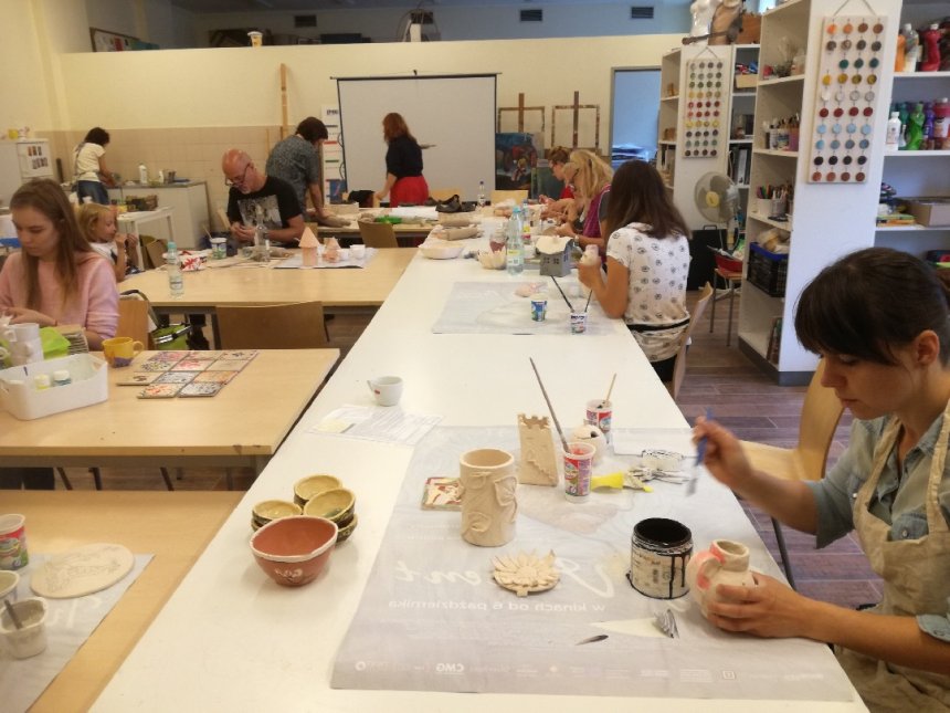 Sobotni, deszczowy poranek nie zniechęcił miłośników ceramiki do skorzystania z ostatnich zajęć w ramach Artystycznych Wakacji 2018 z Pałacem Kultury Zagłębia. W pracowni plastycznej zjawił się komplet uczestników z głowami pełnymi pomysłów na ozdobienie wyrobów. Jak pracuje się z gliną ceramiczną będzie można zobaczyć również w poniedziałek, 3 września br. w godzinach 18:00-20:00. Wszystkich zainteresowanych zapraszamy na Dni Otwarte! 3 września - dorośli, 4 września - dzieci.