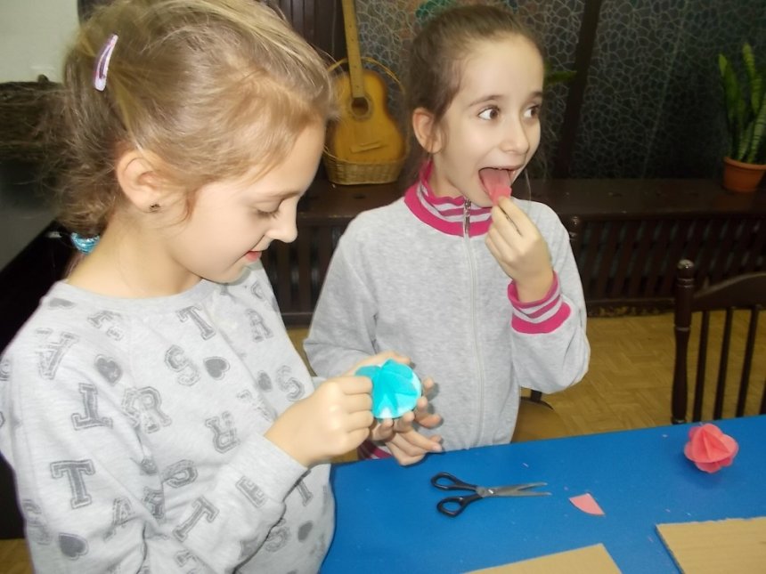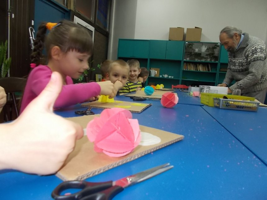 Tworzenie światów polega na klejeniu za pomocą śliny okrągłych elementów z opłatka tak, by stworzyć kulę. Jest to forma podstawowa, którą można rozbudowywać. Uczestnicy warszatów wykonali piękne i oryginalne ozdoby choinkowe, co liczy się tym bardziej w czasach, gdy zalewa nas fala marketowej tandety.