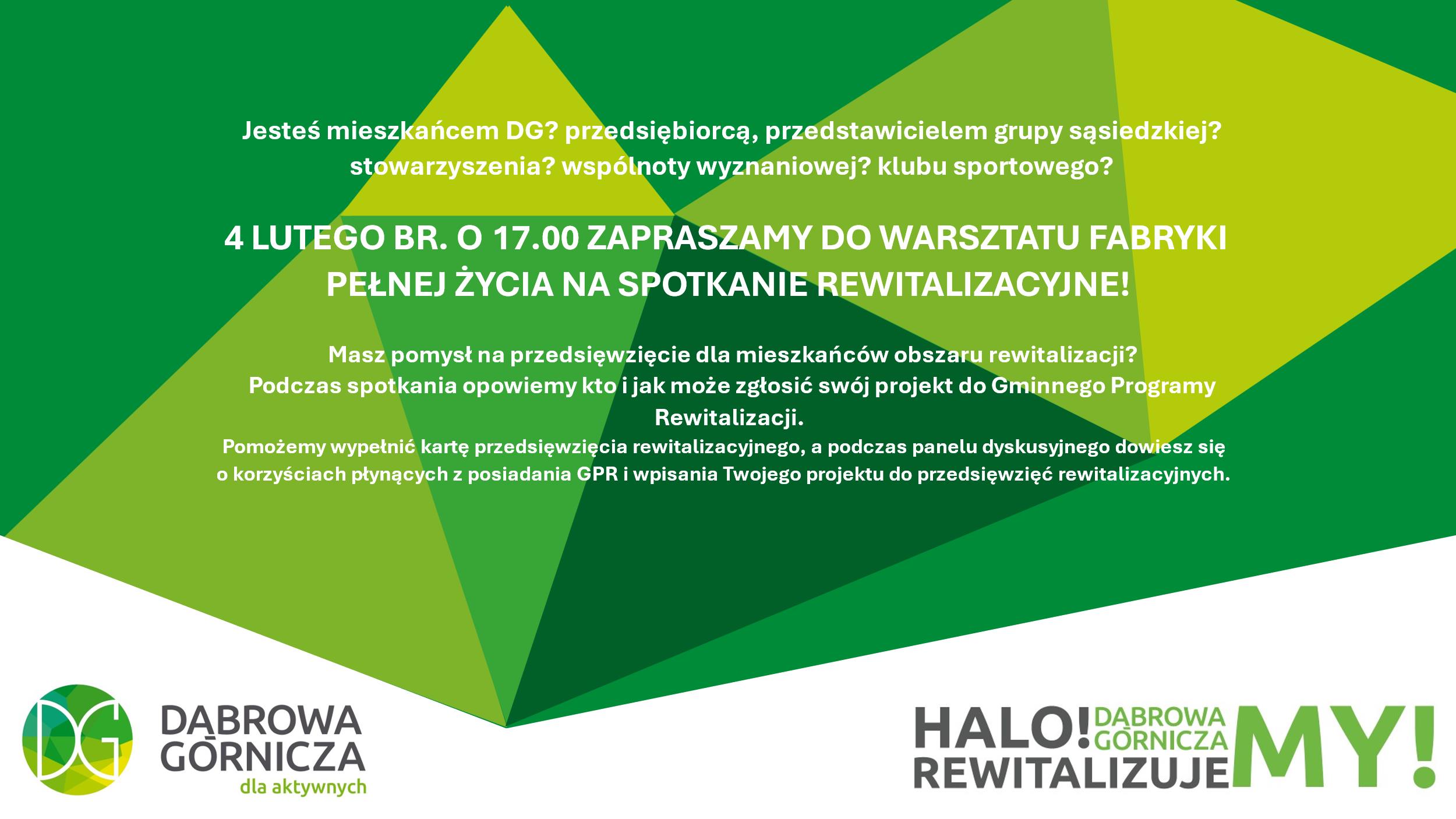 4 lutego br. o 17:00 zapraszamy do warsztatu Fabryki Pełnej Życia na spotkanie rewitalizacyjne.