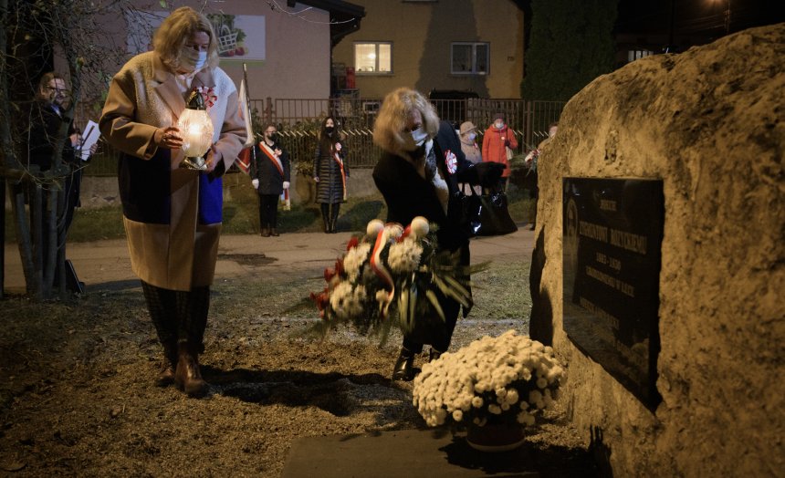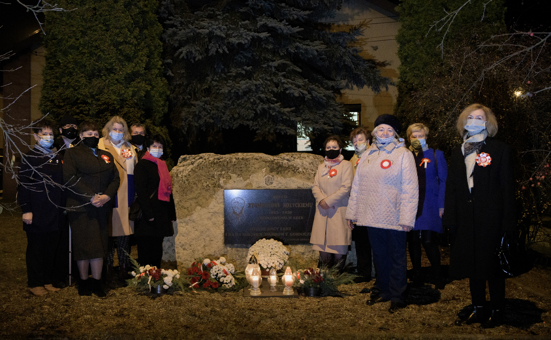 Złożenie kwiatów pod pomnikiem Zygmunta Różyckiego