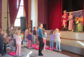 Pierwszy Niedzielny Poranek Teatralny po wakacyjnej przerwie już za nami. Aktorzy Studia Teatralnego SZTUKA z Trzebini zaprezentowali przedstawienie pt. Pan Twardowski, oparte na powszechnie znanej legendzie krakowskiej, stanowiącej element naszej narodowej kultury. Podczas spektaklu młodzi widzowie usłyszeli hejnał krakowski oraz obejrzeli tradycyjne stroje szlacheckie. Spotkanie miało charakter interaktywny - dzieci angażowały się i brały czynny udział w spektaklu (m.in. tańczyły i pomagały diabełkowi schwytać Pana Twardowskiego). Gra aktorska, kolorowa scenografia (w tle Zamek na Pieskowej