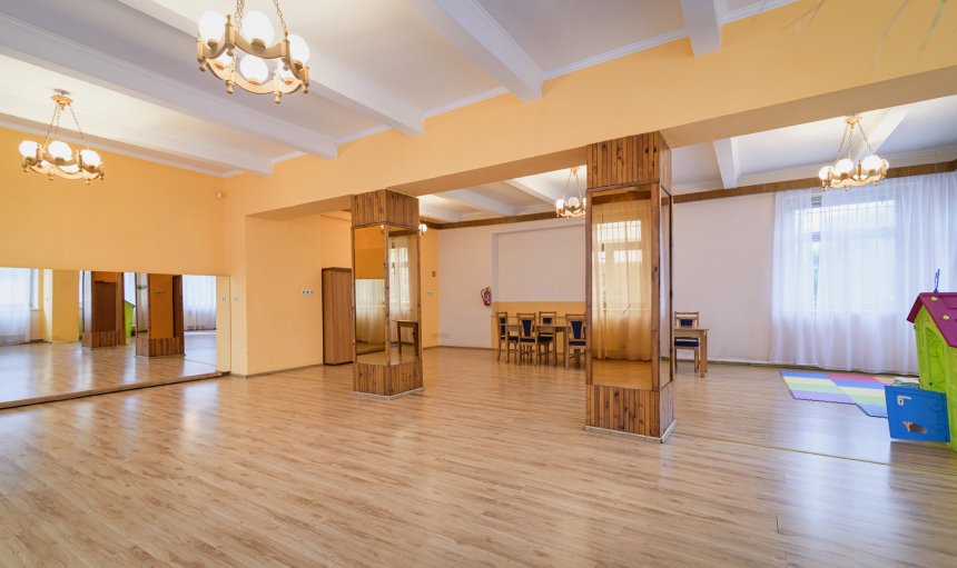 Sala Lustrzana o powierzchni 99m2. Sala w formie kwadratu, po środku dwa słupy z lustrami. Może być wykorzystana zarówno do ustawienia konferencyjnego, jak również bankietowego. Odbywają się na niej różnego rodzaju spotkania i kiermasze.
