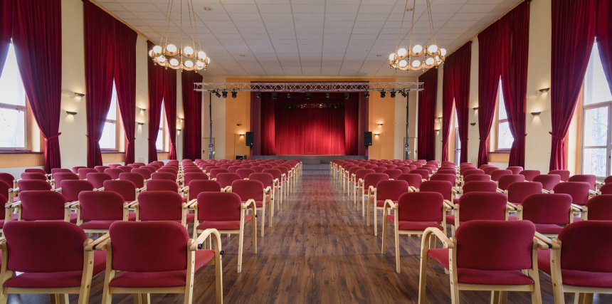 Sala Teatralna o powierzchni 353m2, dysponuje 250 miejscami. Scena o wymiarach 7,5 m x 4,3 m. Głębokość sceny licząc od okna wynosi 5,5 m, a szerokość 10 m. Po prawej i lewej stronie sceny znajdują się schody wejściowe. Na zapleczu sceny do dyspozycji 3 garderoby (bezpośrednie przejście ze sceny).