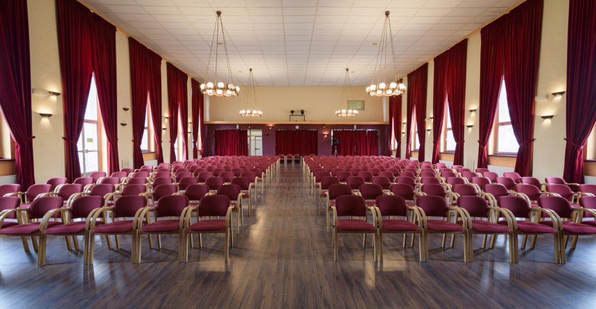 Sala Widowiskowo–Wystawiennicza o powierzchni 288m2. Może być przeznaczona do organizacji różnego rodzaju wystaw oraz prezentacji.