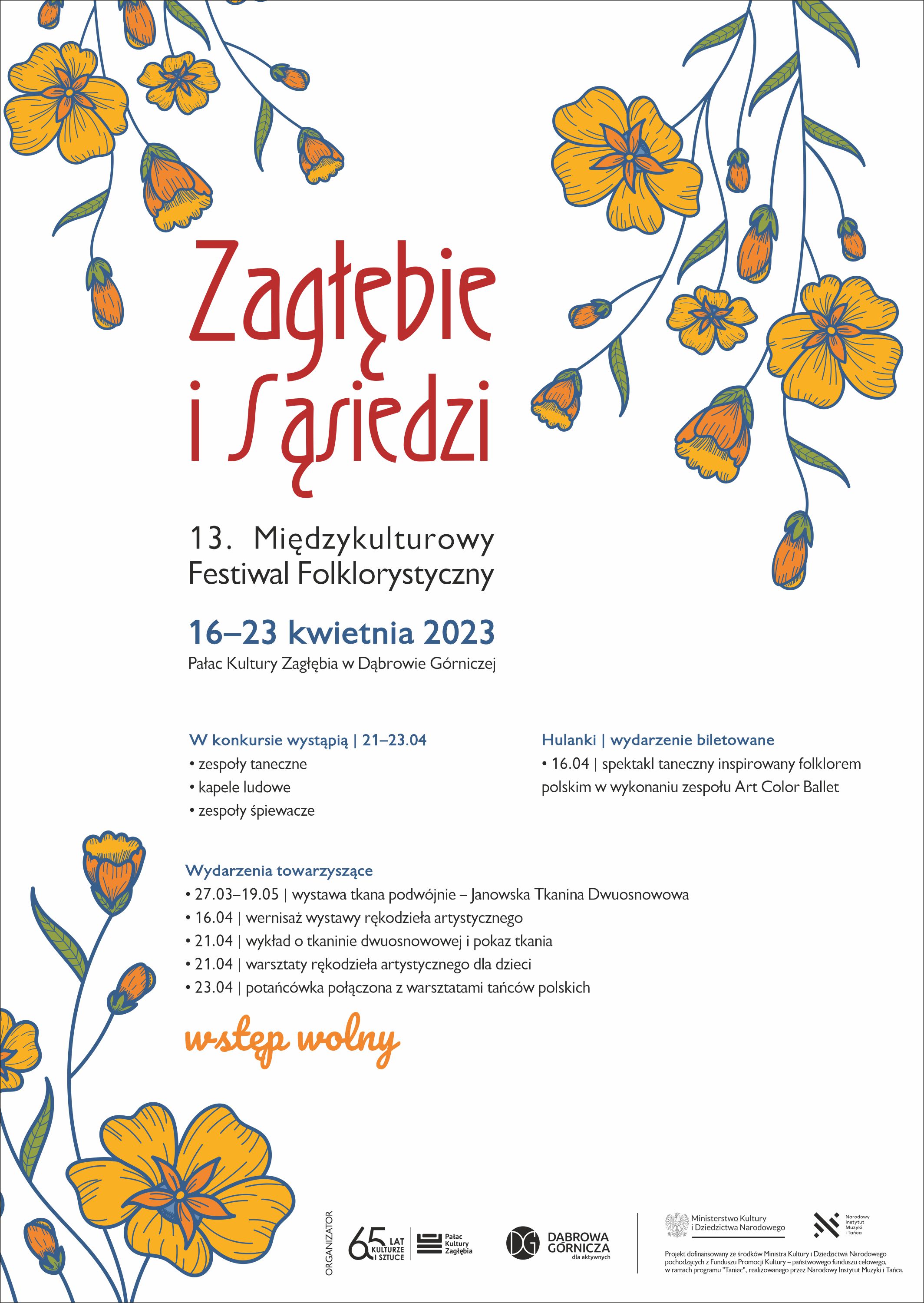 Od 21 do 23 kwietnia br. w Pałacu Kultury Zagłębia odbędzie się kolejna, 13. edycja folkowego święta - Międzykulturowego Festiwalu Folklorystycznego Zagłębie i Sąsiedzi!
