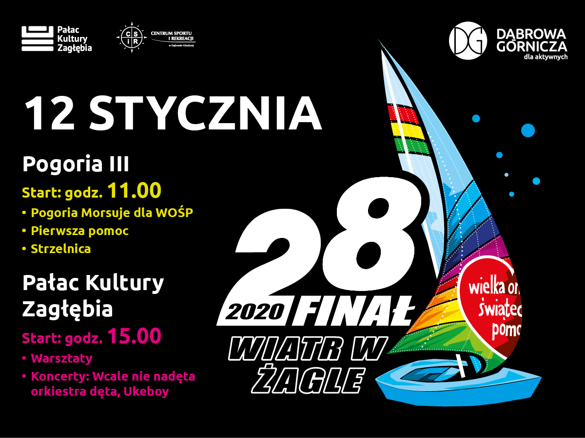 Wielkiej Orkiestry Świątecznej Pomocy nie trzeba przedstawiać. Dwudziesty ósmy raz, 12 stycznia 2020, WOŚP rozgrzeje nasze serca i będzie zachęcać do czynienia dobra! Na terenie całej Polski i poza jej granicami przeprowadzane będą zbiórki pieniężne na zakup aparatury ratującej życie dzieciaków. W tym roku wiatr w żagle dla zapewnienia najwyższych standardów diagnostycznych i leczniczych w dziecięcej medycynie zabiegowej. Ahoj drużyno z Dąbrowy Górniczej i okolic - zapraszamy na finał!