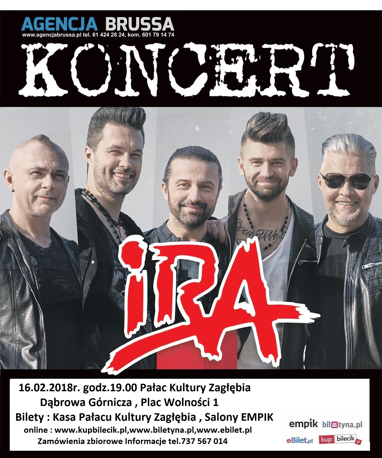 16 lutego o 19:00 w Pałacu Kultury Zagłębia odbędzie się wyjątkowy koncert z okazji 30-lecia legendy polskiego rocka - zespołu IRA. W Sali Teatralnej PKZ usłyszymy najwieksze przeboje grupy!