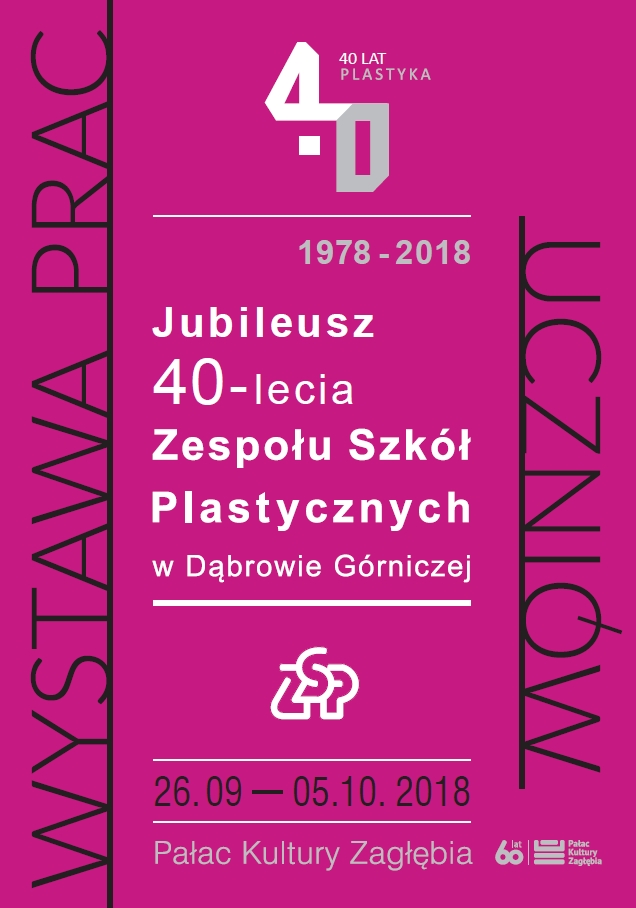 Z okazji 40-lecia istnienia placówki, w Pałacu Kultury Zagłębia odbędzie się wystawa prac uczniów, na której zostaną zaprezentowane dzieła malarskie, reklamowe, szklane, witraż, grafika i rysunek. Wystawa będzie dostępna w Galerii Sztuki od 26 września do 5 października.