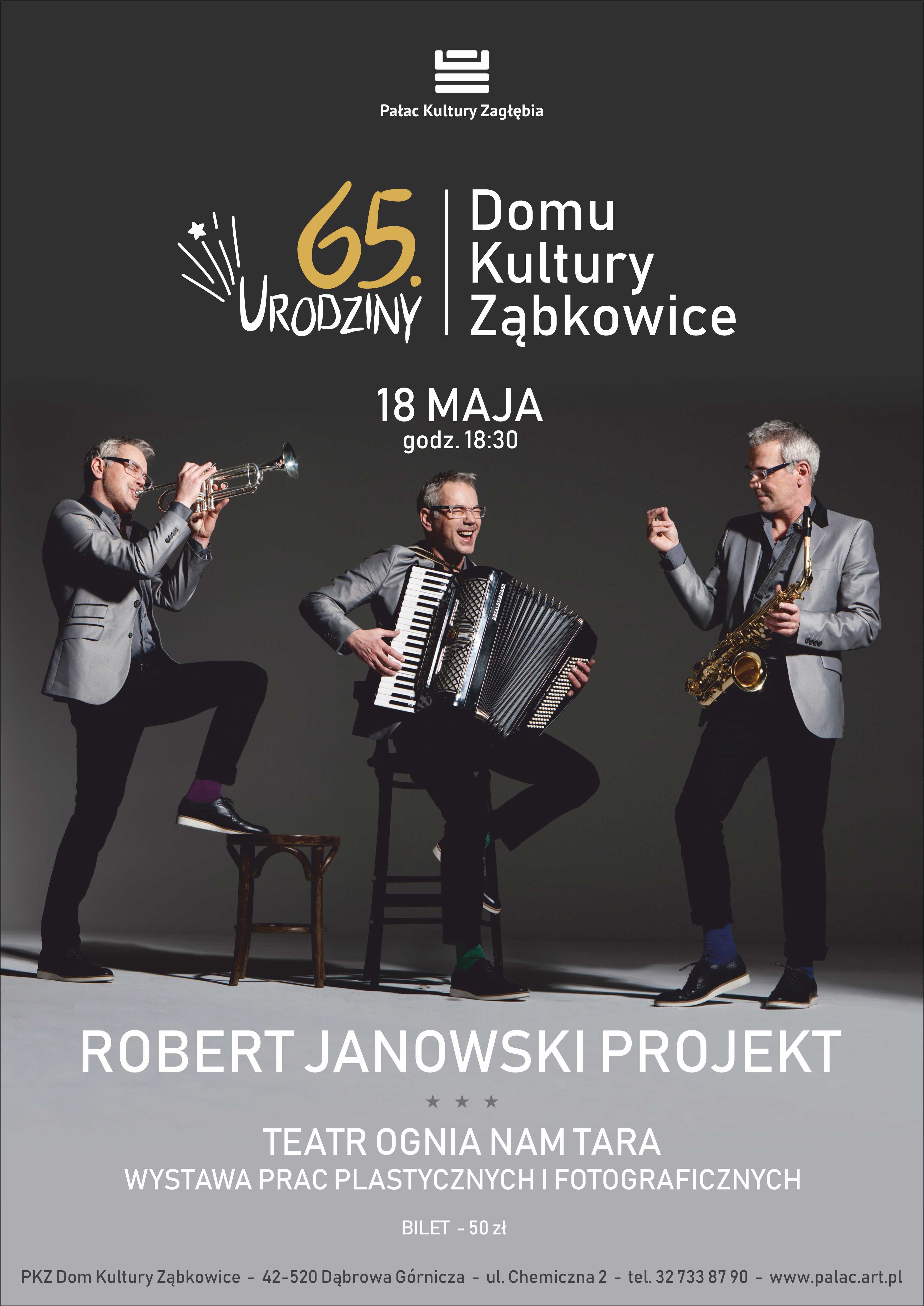 Uroczystość obchodów 65. urodzin PKZ Domu Kultury Ząbkowice rozpocznie się od pokazu kroniki filmowej DKZ. Później w roli muzycznej przystawki wystąpią uczestnicy zajęć emisji głosu pod kierownictwem Aleksandry Gawęckiej-Imiołczyk, a tuż po nich usłyszymy gwiazdę wieczoru w koncercie Robert Janowski Projekt. W programie koncertu będzie można znaleźć nie tylko autorskie utwory Roberta Janowskiego, ale także przeboje muzyki rozrywkowej. Wszystko to w akustycznej wersji unplugged.