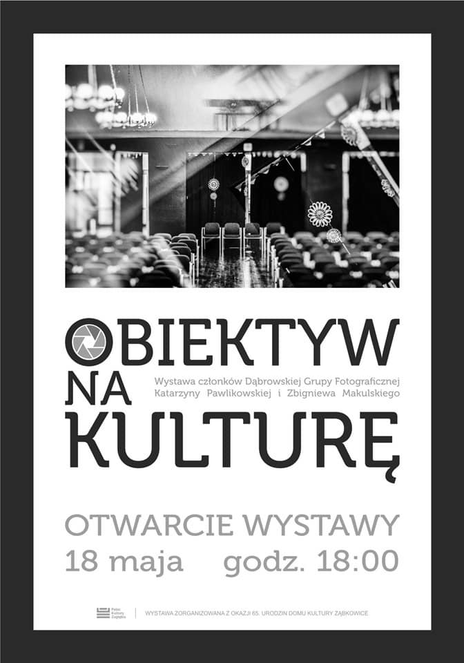 PKZ Dom Kultury Ząbkowice - jedna z najstarszych instytucji kulturalnych w Dąbrowie Górniczej. Placówka o bogatej historii, na której scenie występowali najwięksi artyści polskiej estrady. 18 maja DKZ skończy 65 lat! Z tej okazji o godzinie 18:00 odbędzie się wernisaż wystawy fotografii Obiektyw na kulturę autorstwa Dąbrowskiej Grupy Fotograficznej.