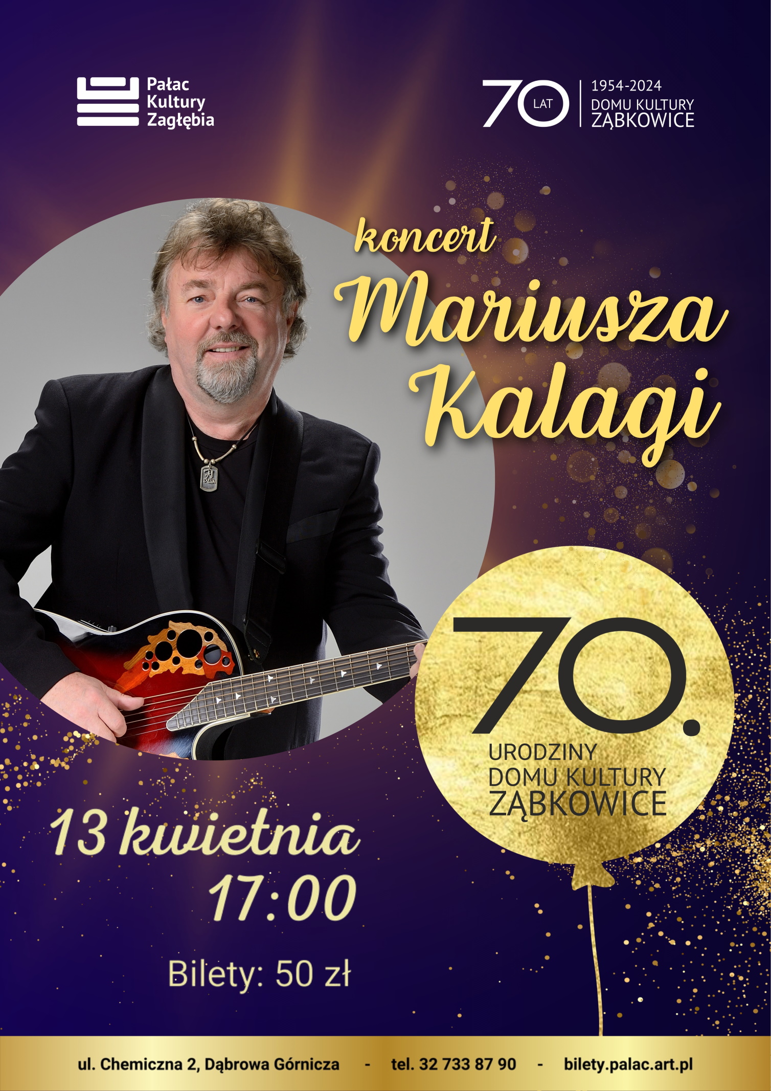 Dom Kultury Ząbkowice – jedna z najstarszych instytucji kulturalnych w Dąbrowie Górniczej, obchodzi w tym roku swoje 70-lecie! Z tej okazji – 13 kwietnia o 17:00 – na scenie DKZ wystąpią Mariusz Kalaga oraz podopieczni edukacji artystycznej i kulturalnej ząbkowickiego domu kultury.
