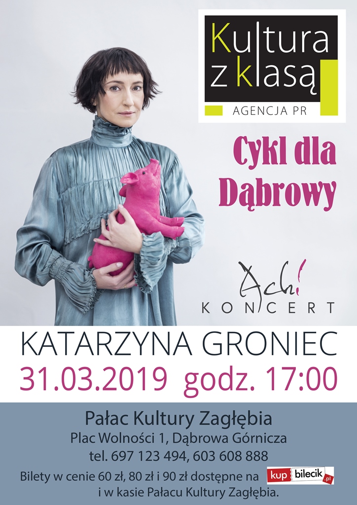 Katarzyna Groniec ze swoją najnowszę płytą Ach! wystąpi w Pałacu Kultury Zagłębia 31 marca 2019 r. o godz. 17:00.