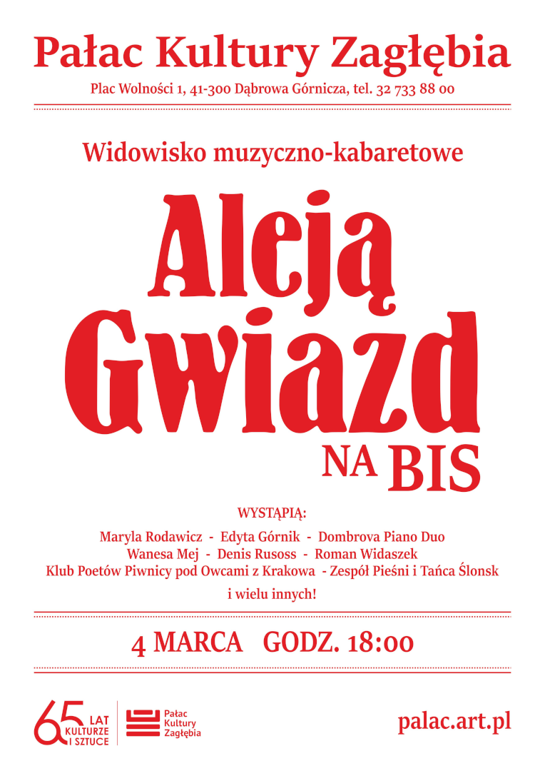 Tego dnia na naszych deskach, z okazji jubileuszu 65-lecia PKZ, wystąpią gwiazdy lokalnej, polskiej i międzynarodowej sceny m.in.: