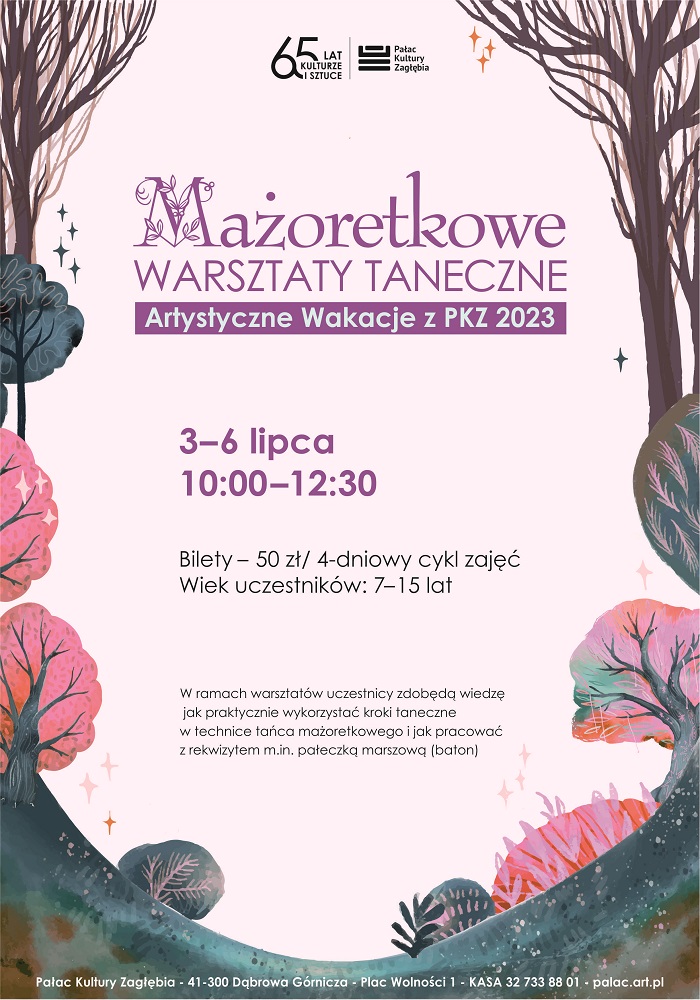 Serdecznie zapraszamy na Artystyczne Wakacje z PKZ pod hasłem Mażoretkowe warsztaty taneczne Zajęcia będą odbywały się w terminie 3-6 lipca w godzinach 10.00-12.30W ramach warsztatów uczestnicy zdobędą wiedzę jak praktycznie wykorzystać kroki taneczne w technice tańca mażoretkowego i jak pracować z rekwizytem m.in. pałeczką marszową (baton).