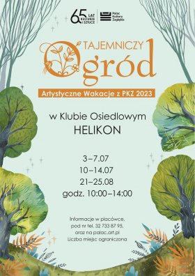 Serdecznie zapraszamy na Artystyczne Wakacje z PKZ pod hasłem Tajemniczy ogród w Klubie Osiedlowym Helikon. Zajęcia będą odbywały się w terminie 3-7 lipca w godzinach 10.00-14.00. W programie warsztaty artystyczne z zakresu plastyki, rękodzieła, tańca, teatru, wyjścia o charakterze kulturalno-edukacyjnym. Liczba miejsc ograniczona. Szczegóły w placówce oraz pod numerem telefonu 32 733 87 95.