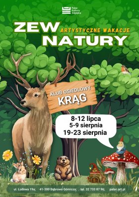 Serdecznie zapraszamy na Artystyczne Wakacje z PKZ pod hasłem Zew natury w Klubie Osiedlowym Krąg. Zajęcia będą odbywały się w terminie 19-23 sierpnia w godzinach 10.00-14.00. W programie warsztaty artystyczne z zakresu plastyki, rękodzieła, tańca, teatru, wyjścia o charakterze kulturalnym. Liczba miejsc ograniczona. Szczegóły w placówce oraz pod numerem telefonu 32 733 87 96.