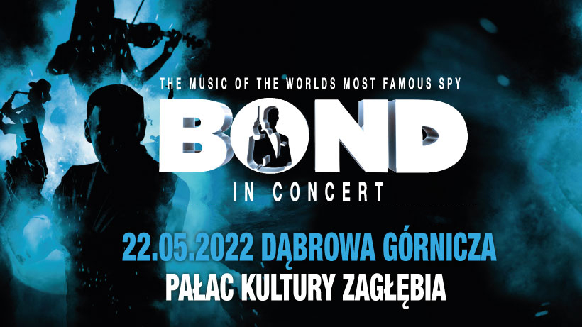"BOND in concert", czyli największe przeboje z filmów o Jamesie Bondzie w wykonaniu znakomitych brytyjskich artystów. Niezwykła muzyczna podróż śladami najbardziej znanego agenta na świecie, 007 – Jamesa Bonda w wykonaniu znakomitych artystów z Wielkiej Brytanii w tajnej służbie Jej Królewskiej Mości! Koncert odbędzie się w Pałacu Kultury Zagłębia 22 maja o godz. 19:30 w Sali Teatralnej.
