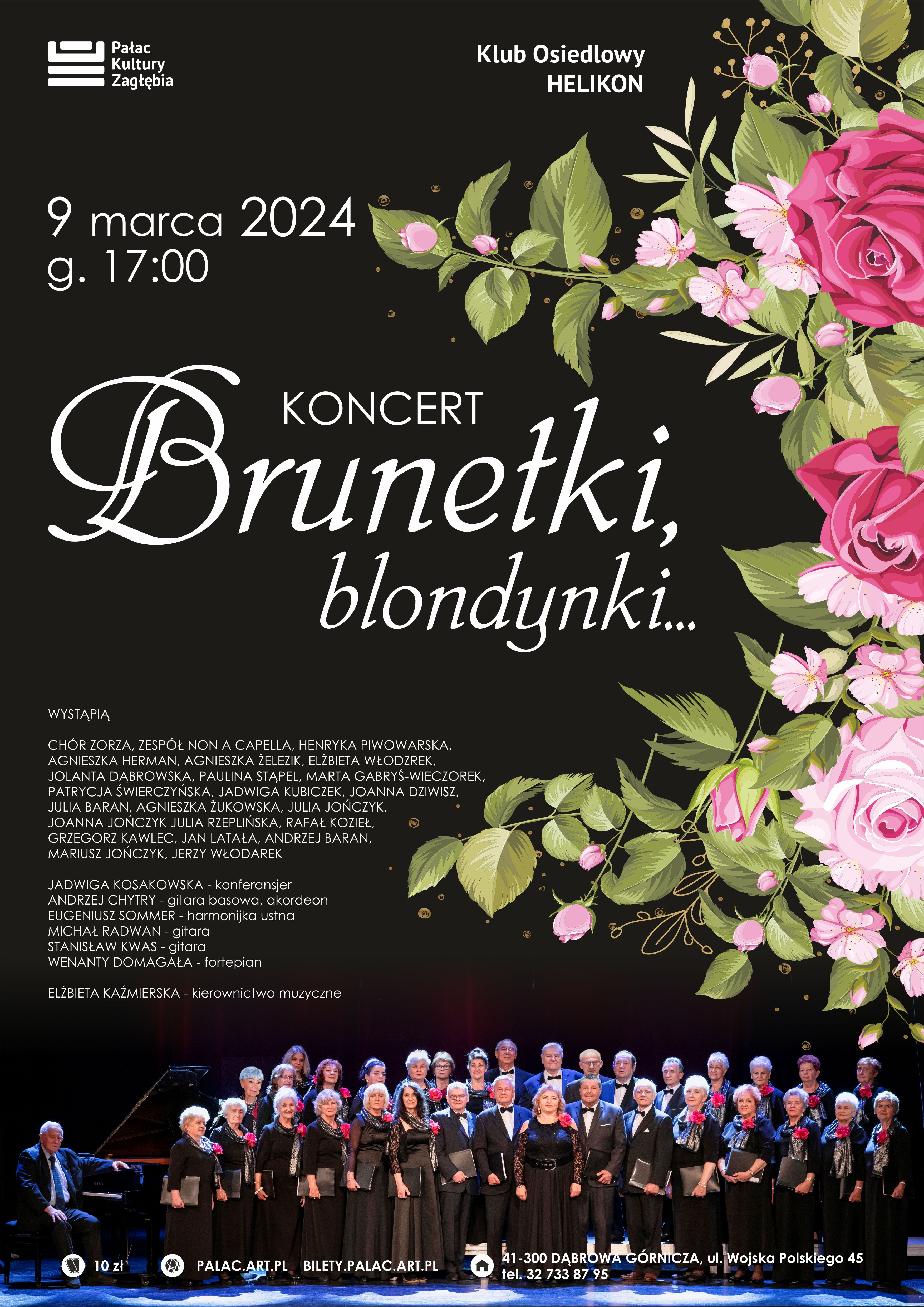9 marca o 17:00 zapraszamy do Klubu Osiedlowego Helikon na specjalny koncert, pt. Brunetki, blondynki poświęcony Kobietom i Mężczyznom z okazji ich święta, podczas którego wystąpi Chór Zorza pod kierownictwem Elżbiety Kaźmierskiej oraz zespół Non a Capella wraz z solistami i instrumentalistami!